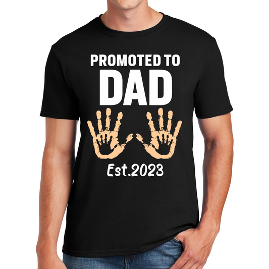 Promoted To Dad Handprints Est. 2023 A New Chapter Begins Gift For Dads T-shirt