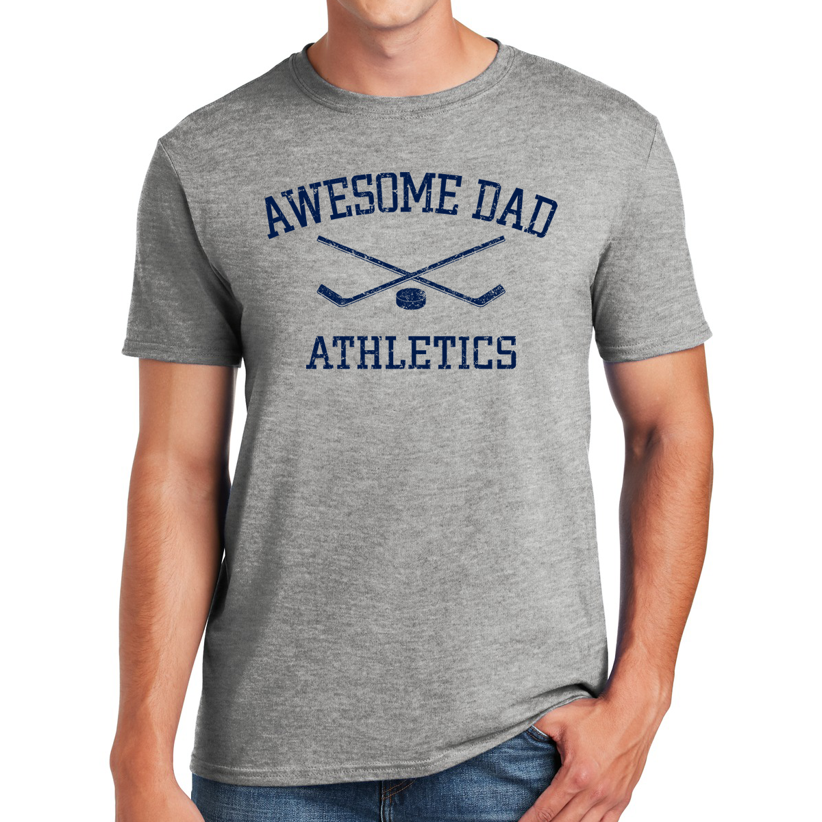 Crafted for comfort and with a bold design, this 'Awesome Dad Athletics Hockey Crossed Sticks' T-shirt is a must-have for any dad who loves the thrill of the game. Wear it with pride and let everyone know that you're an awesome dad who can dominate the ice with style.