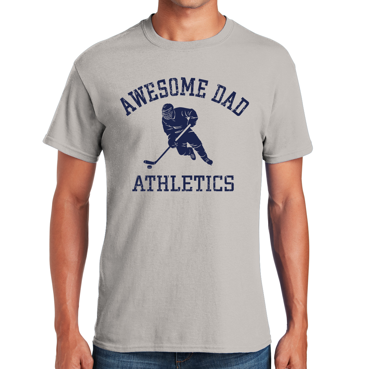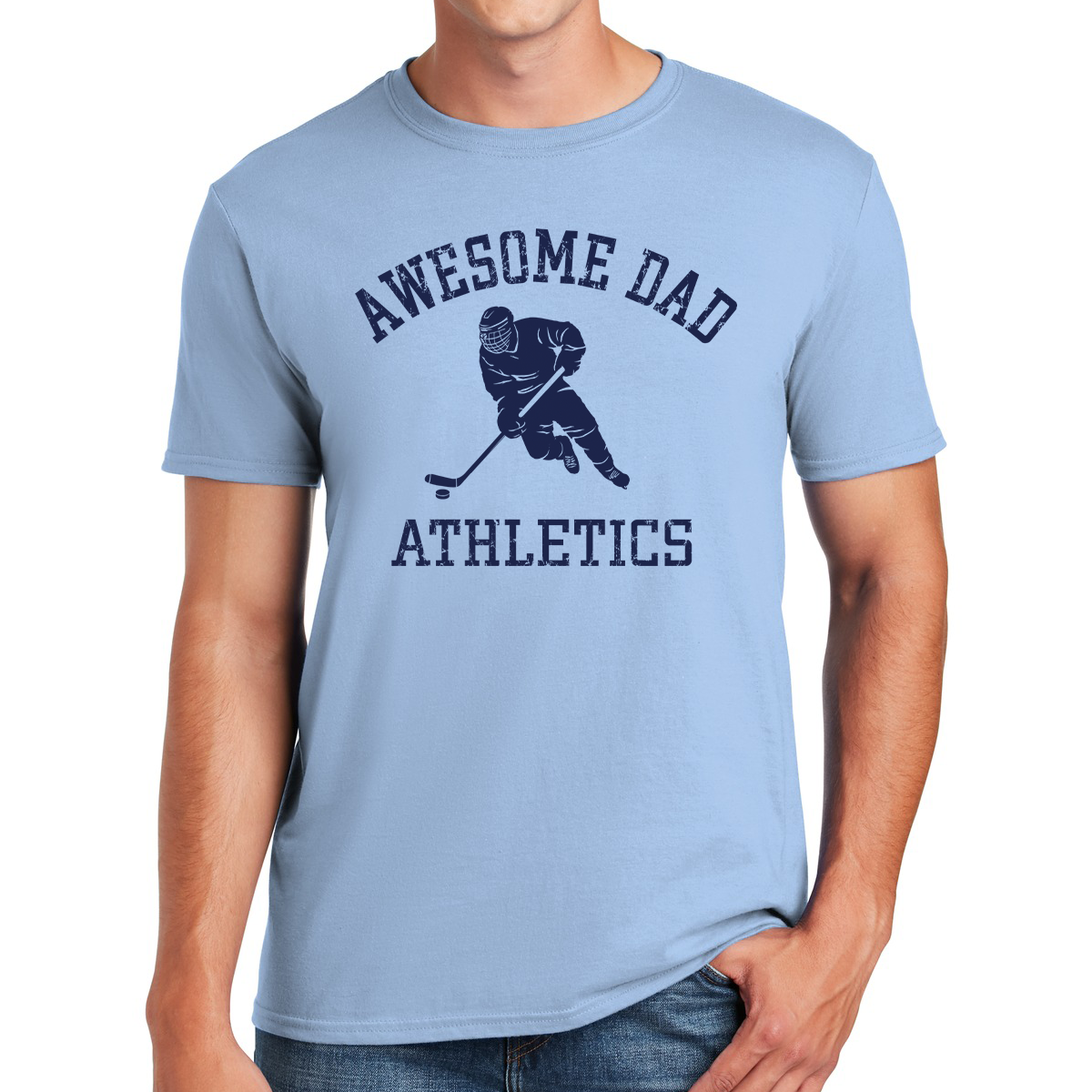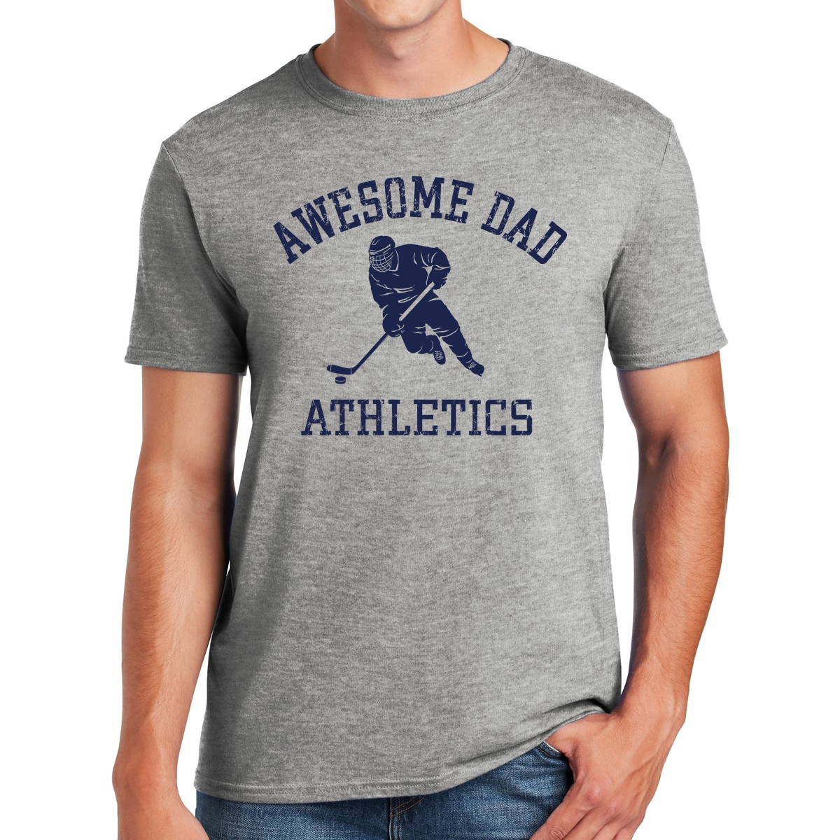 Crafted for comfort and featuring a bold design, this 'Awesome Dad Athletics Hockey Player' T-shirt is a must-have for any dad who knows how to handle the puck with finesse. Wear it with pride and let everyone know that you're an awesome dad who can bring hockey style to any situation.