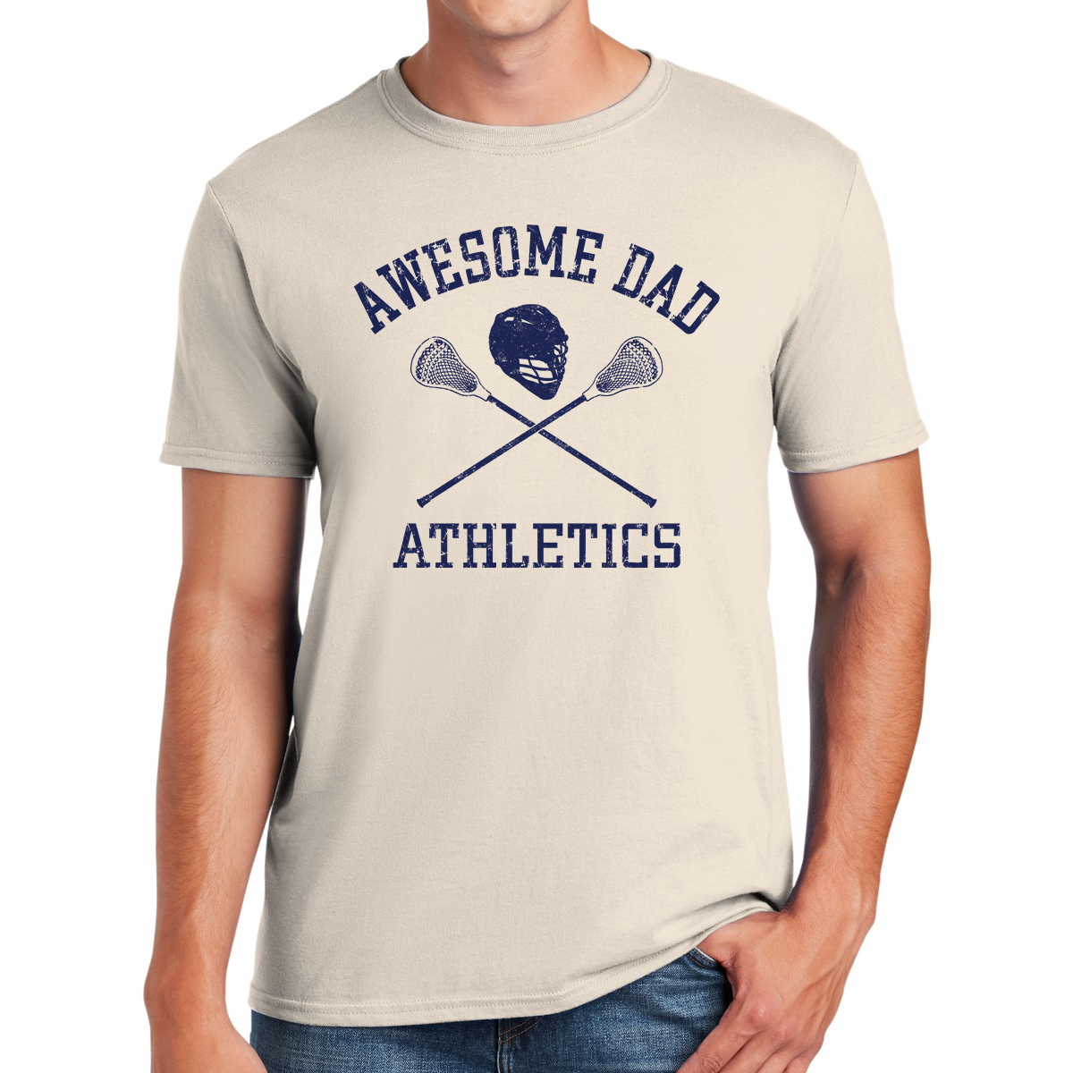 Crafted for comfort and with a bold design, this 'Awesome Dad Athletics Lacrosse Crossed Sticks' T-shirt is a must-have for any dad who loves the thrill of the game. Wear it with pride and let everyone know that you're an awesome dad who can dominate the lacrosse field with style.