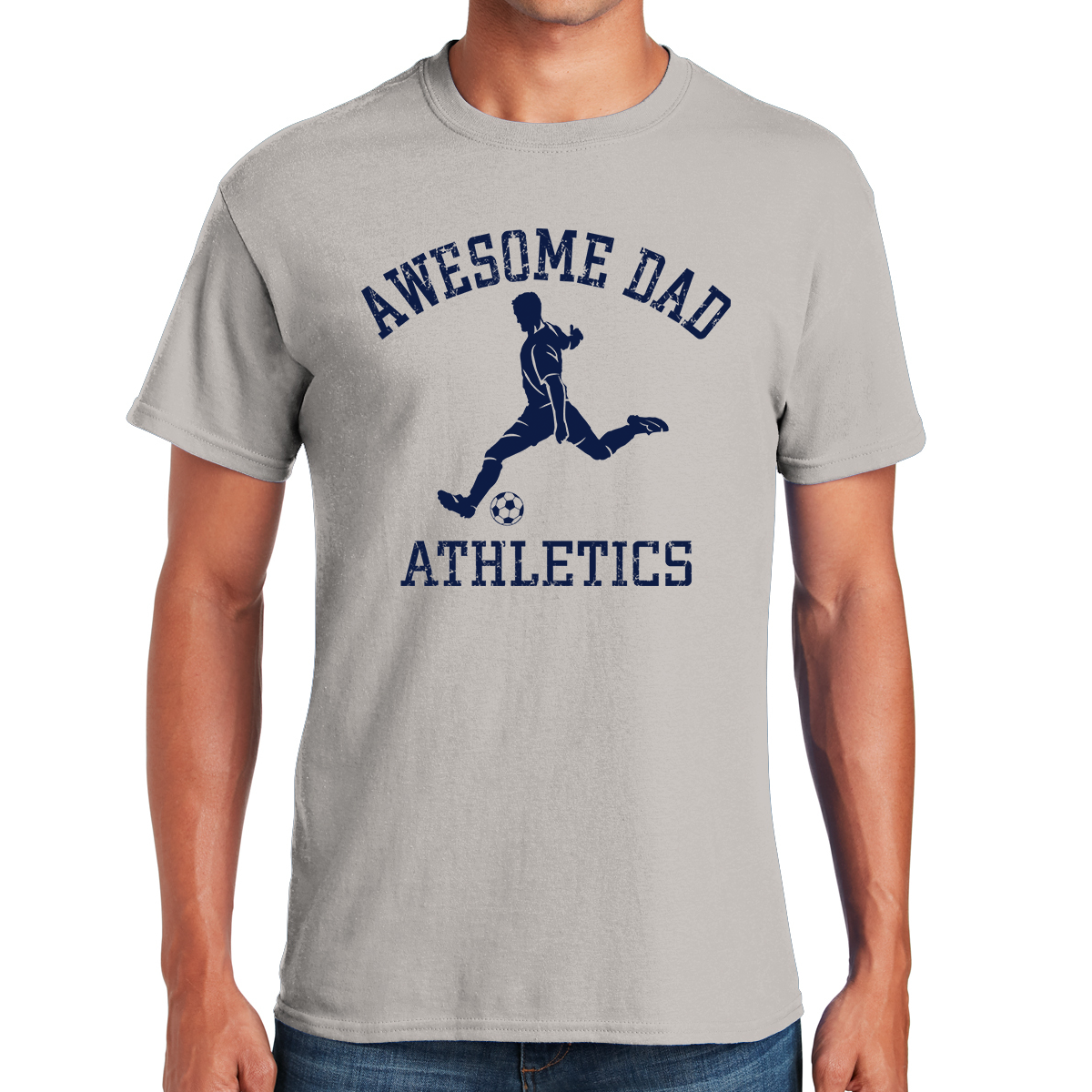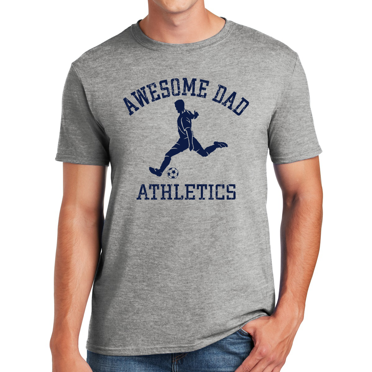 Crafted for comfort and featuring a bold design, this 'Awesome Dad Athletics Soccer Player' T-shirt is a must-have for any dad who loves the thrill of scoring goals. Wear it with pride and let everyone know that you're an awesome dad who can kick goals with style.