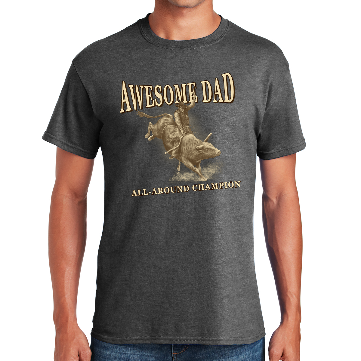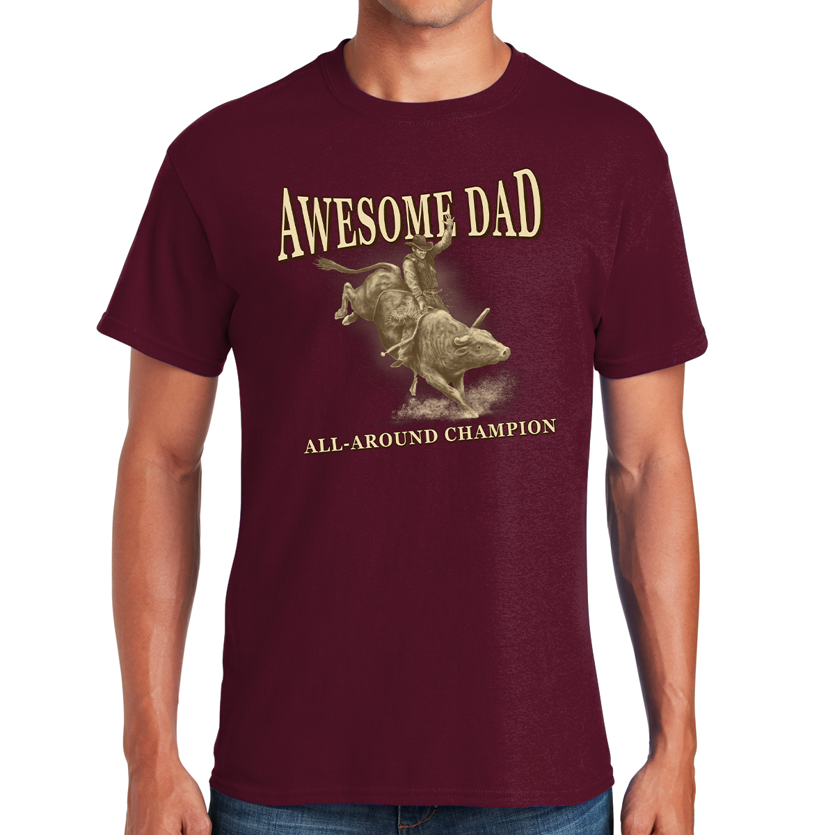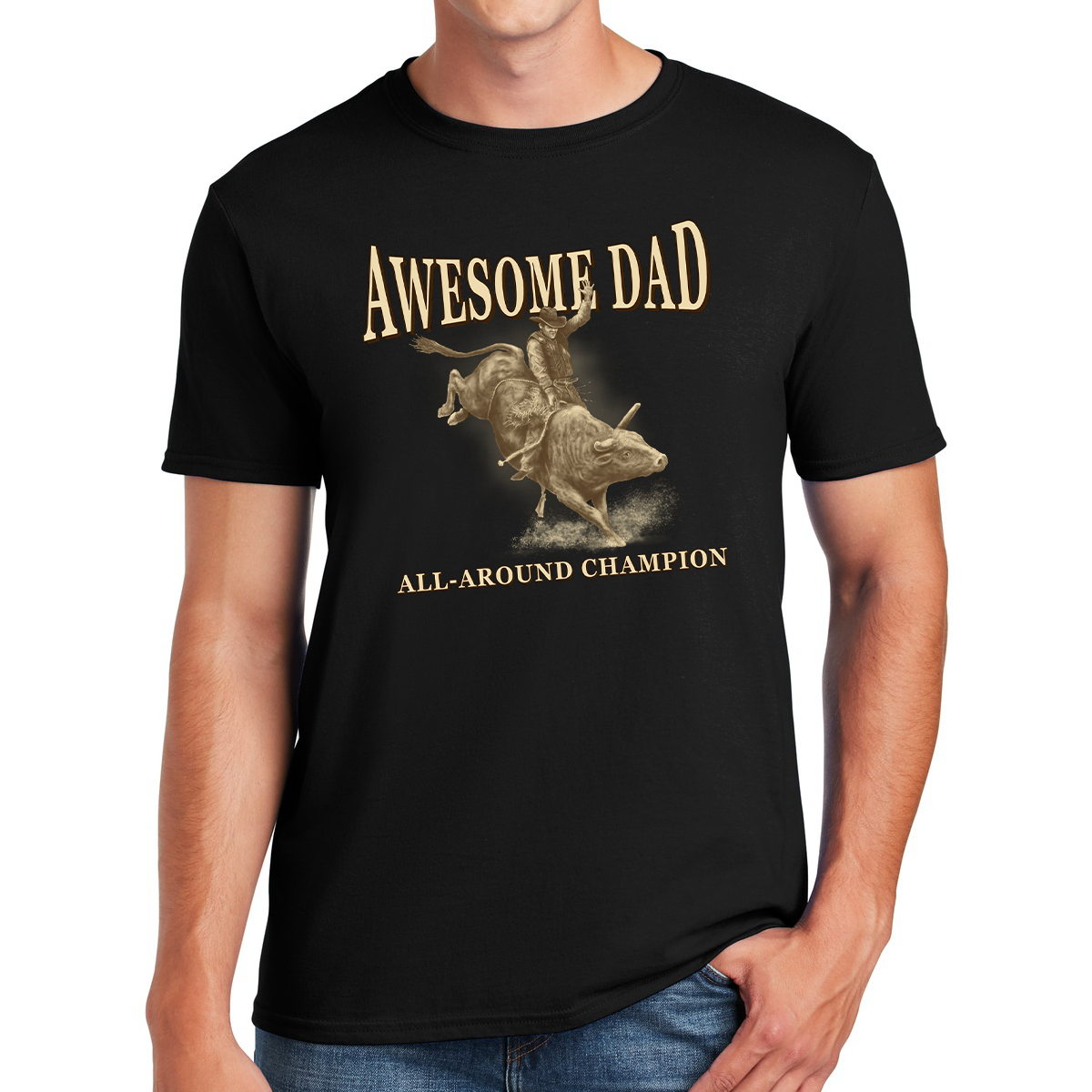Introducing our latest t-shirt design: "Awesome Dad Bull Rider: Conquering Fatherhood with Guts and Grit."