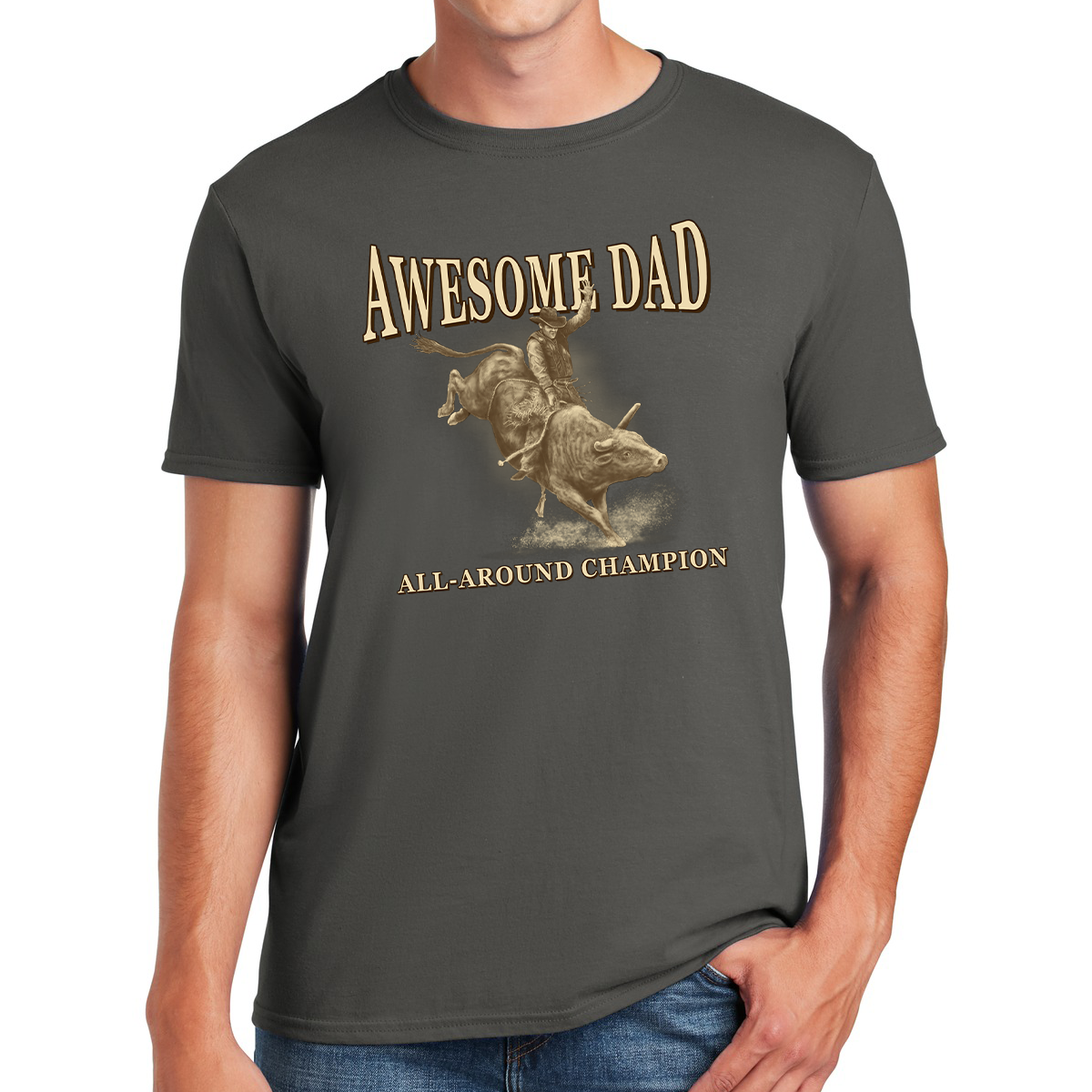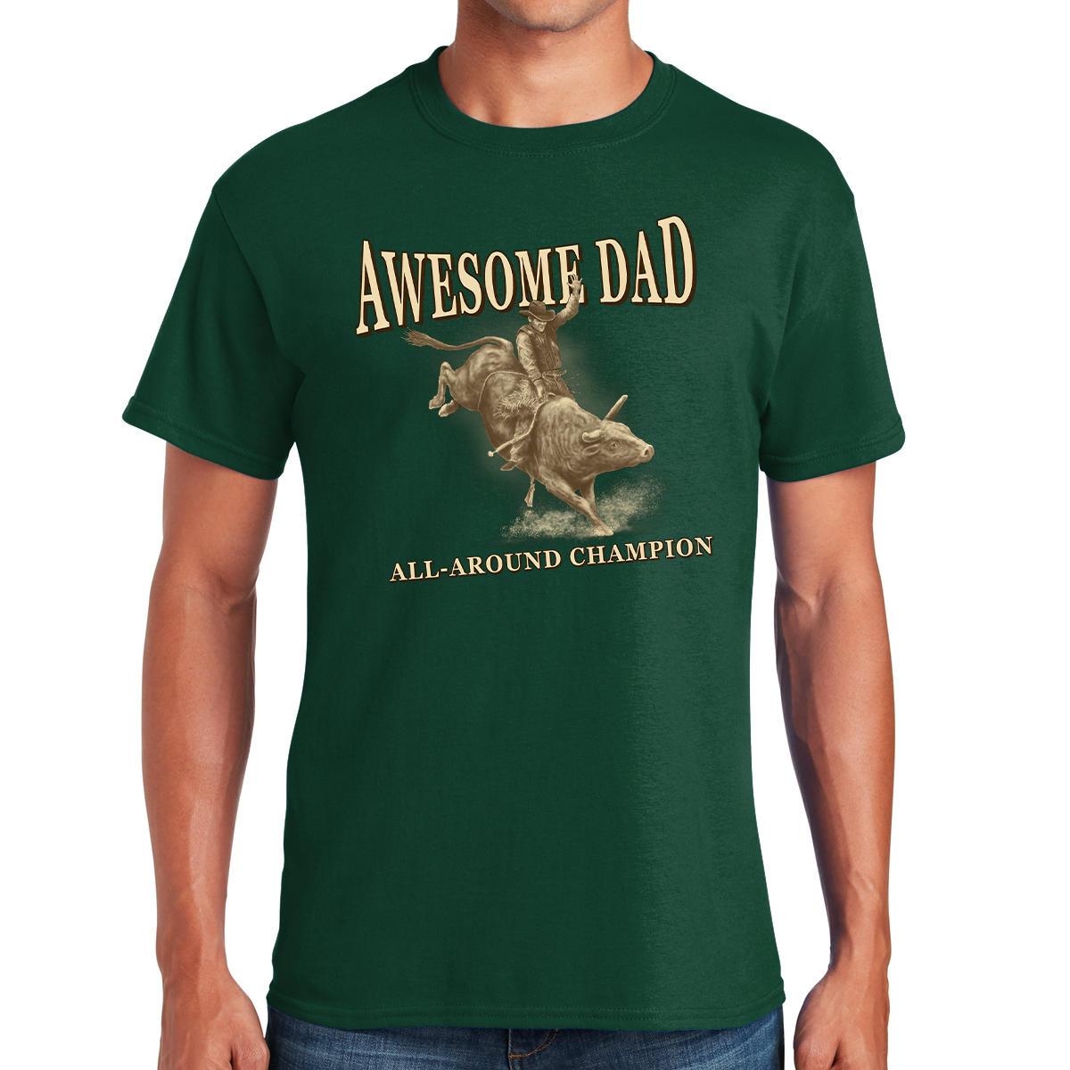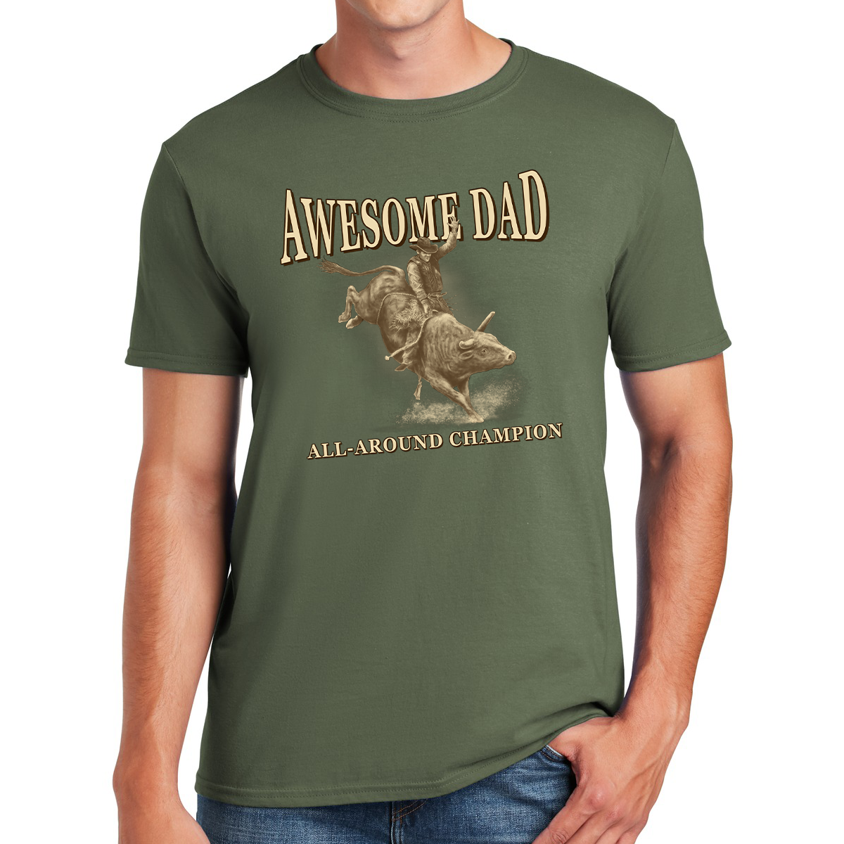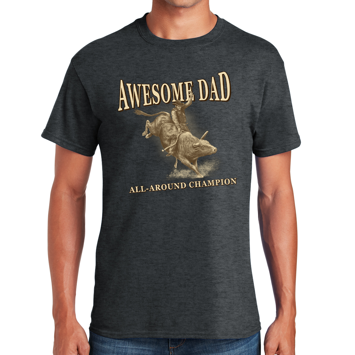 Introducing our latest t-shirt design: "Awesome Dad Bull Rider: Conquering Fatherhood with Guts and Grit."