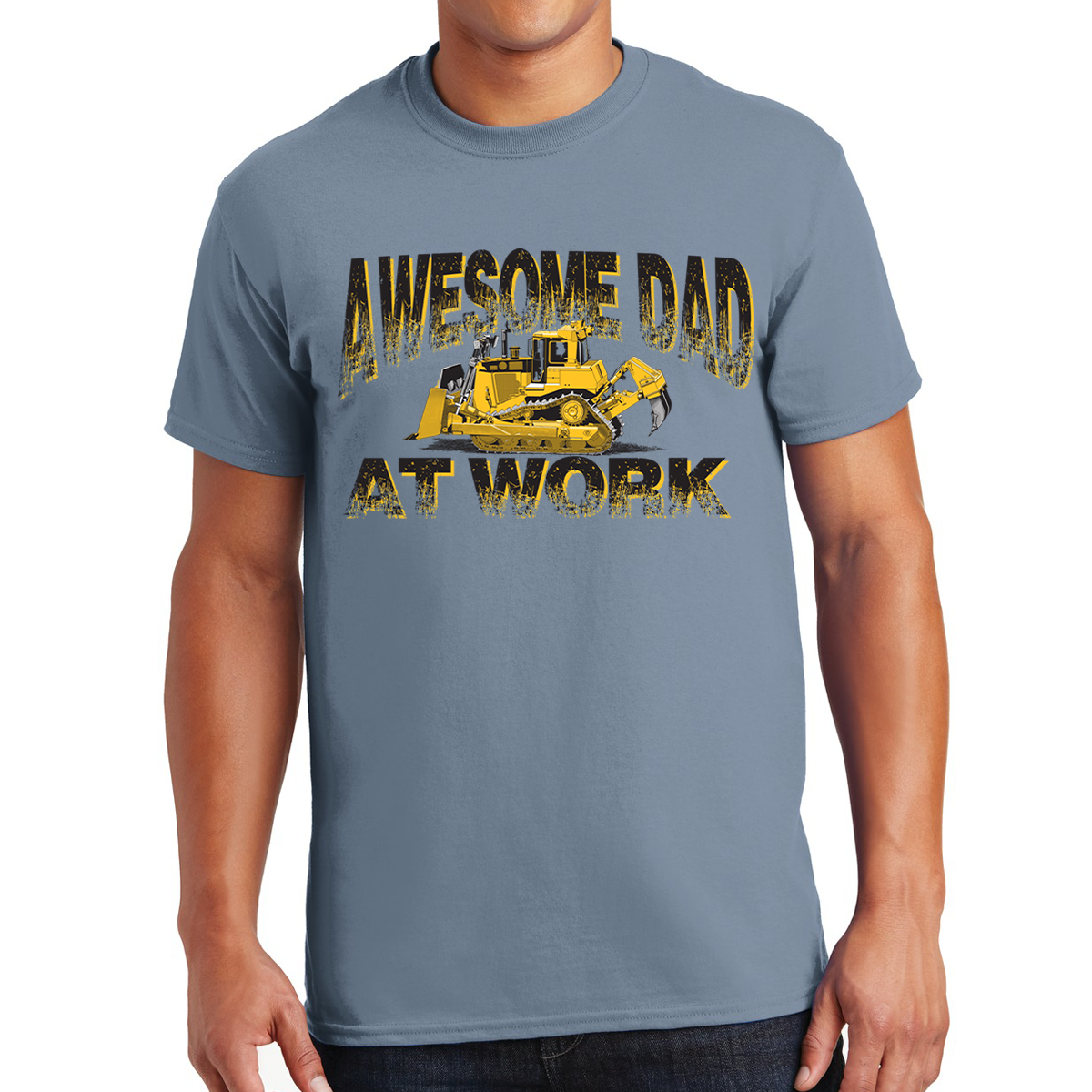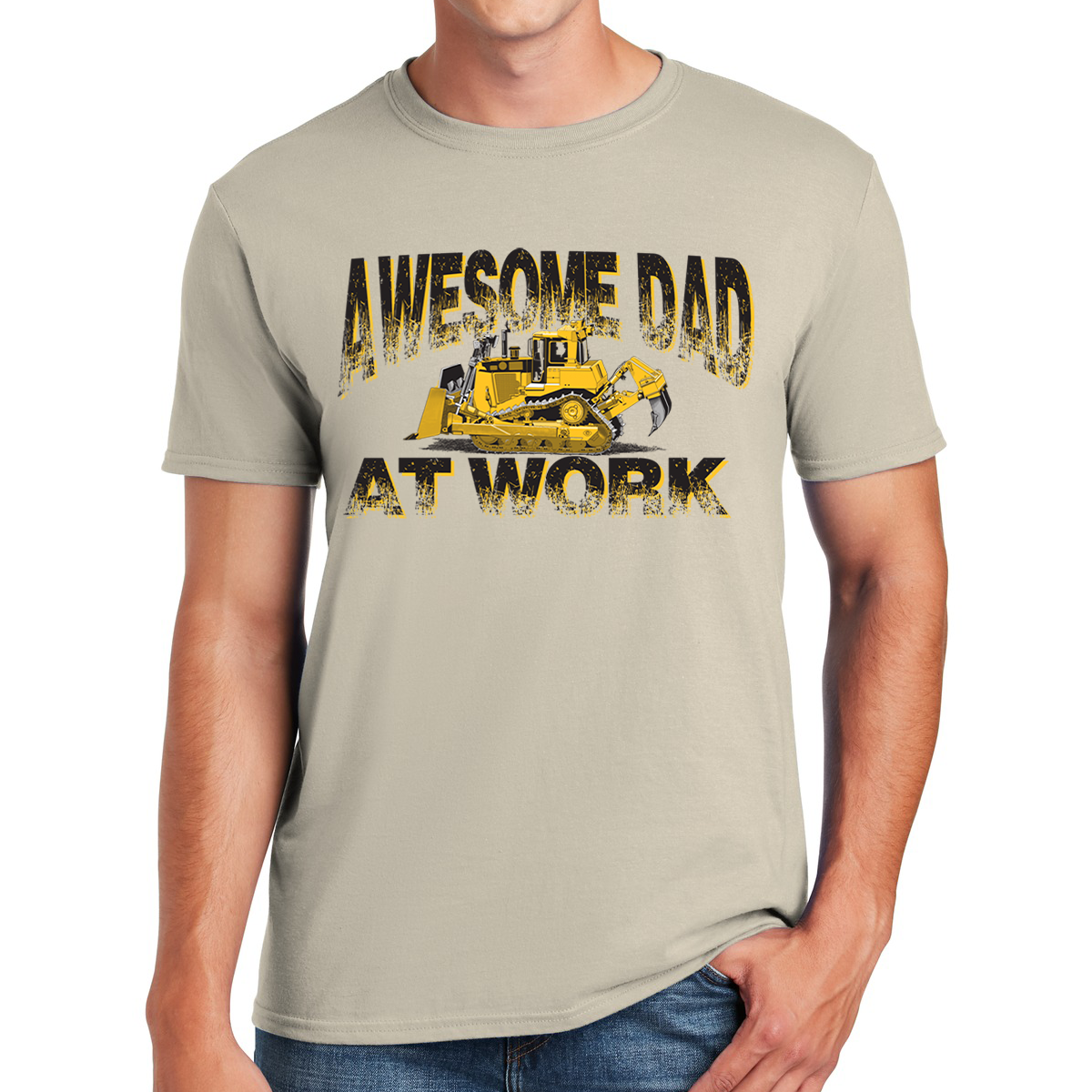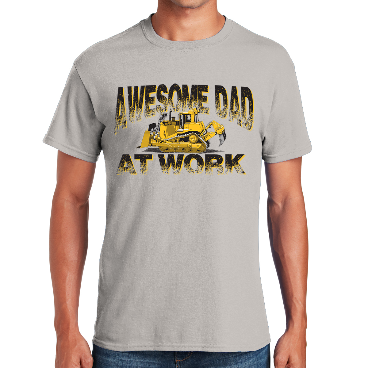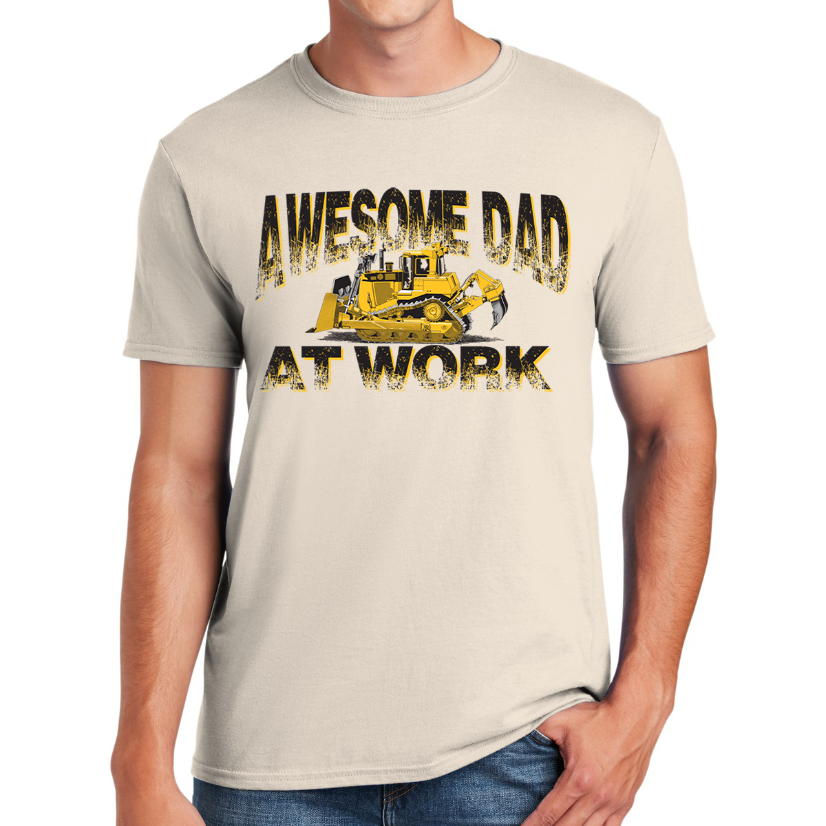 Introducing our latest t-shirt design: "Awesome Dad Bulldozer at Work: Shaping Fatherhood with Strength."