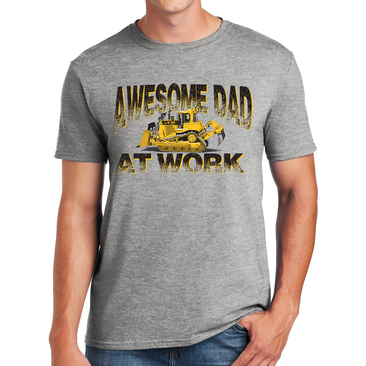 The phrase, "Awesome Dad Bulldozer at Work," takes center stage in the design, signifying your expertise in operating heavy machinery and your dedication to being an awesome dad.