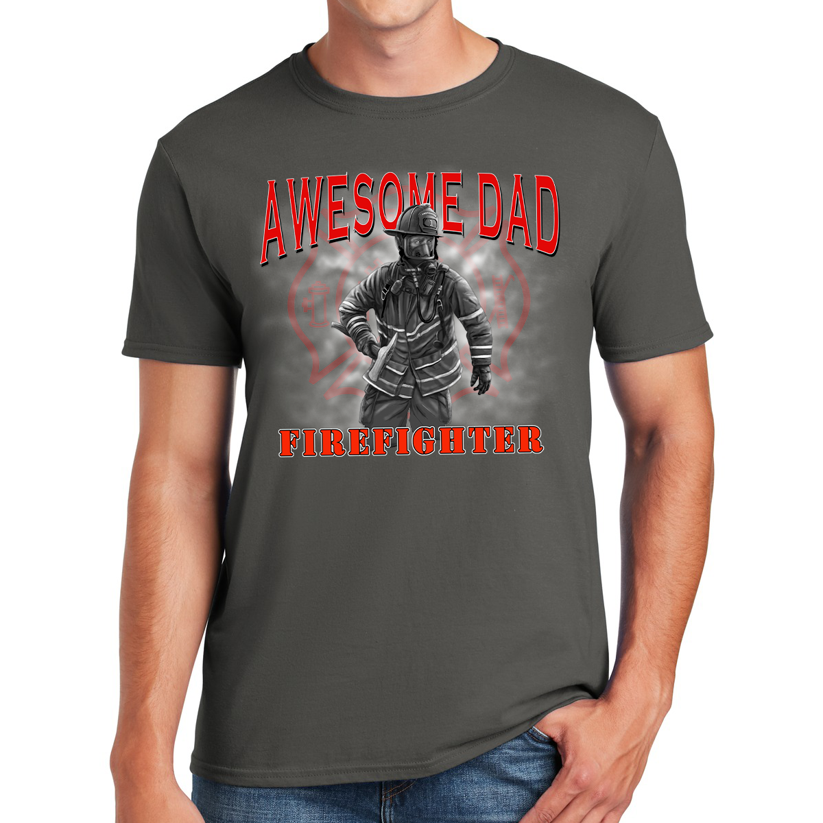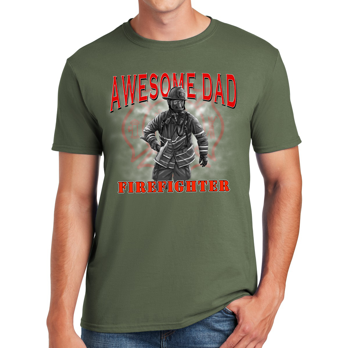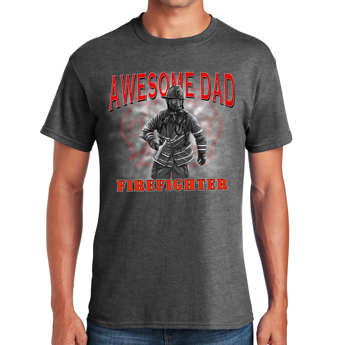 Introducing our latest t-shirt design: "Awesome Dad Firefighter: Igniting Fatherhood with Courage and Love."