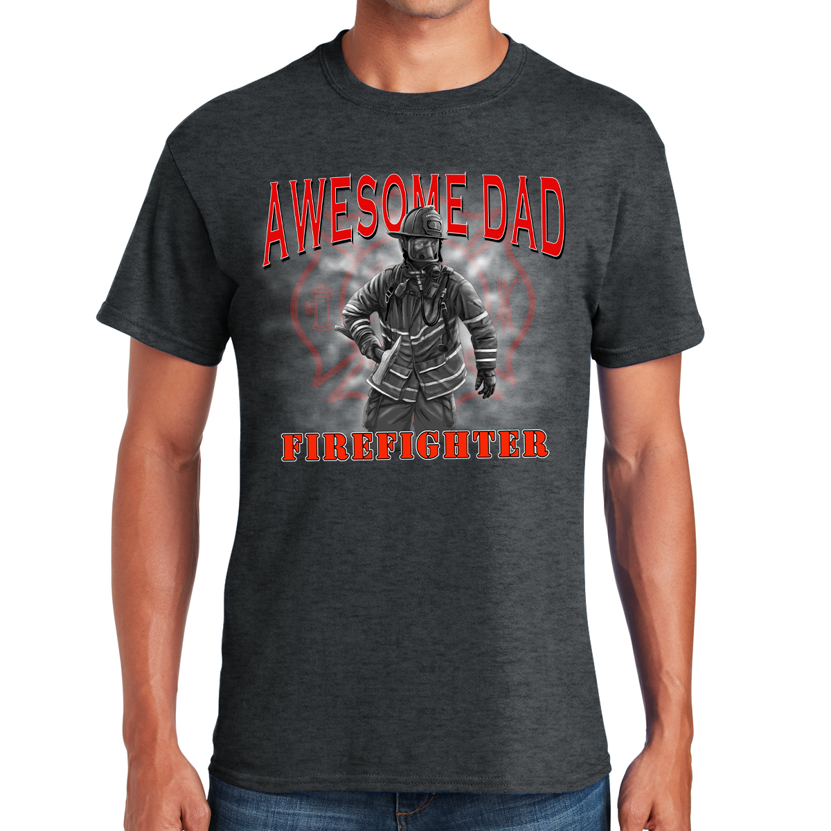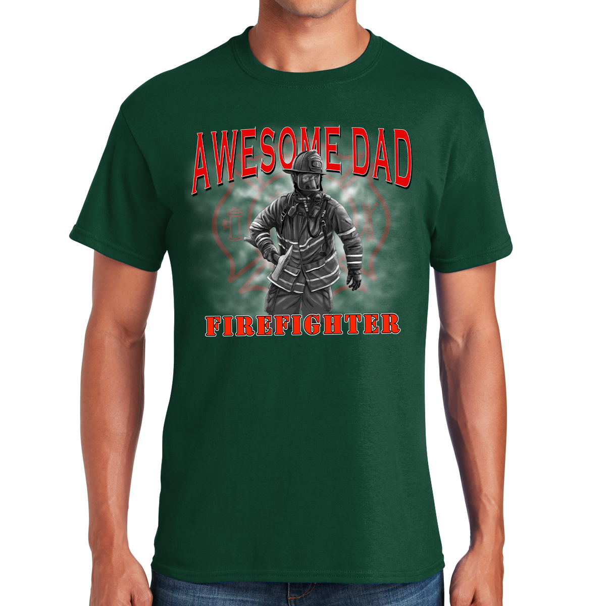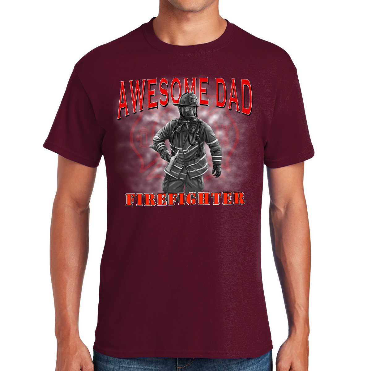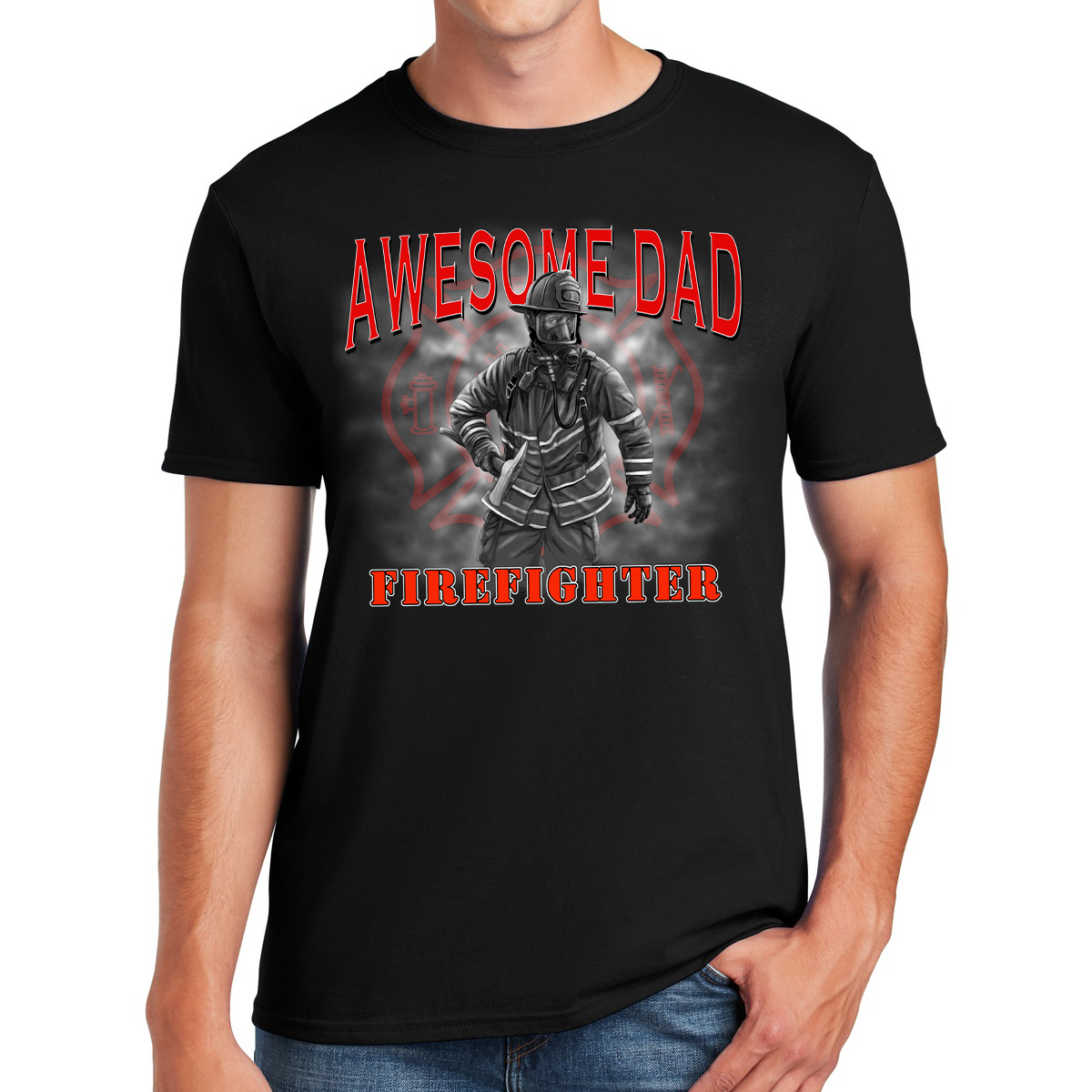 Introducing our latest t-shirt design: "Awesome Dad Firefighter: Igniting Fatherhood with Courage and Love."