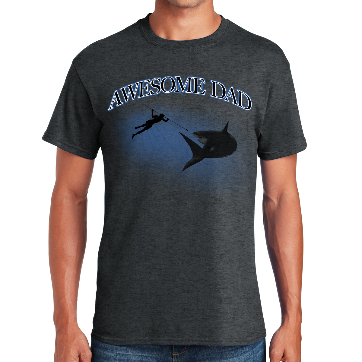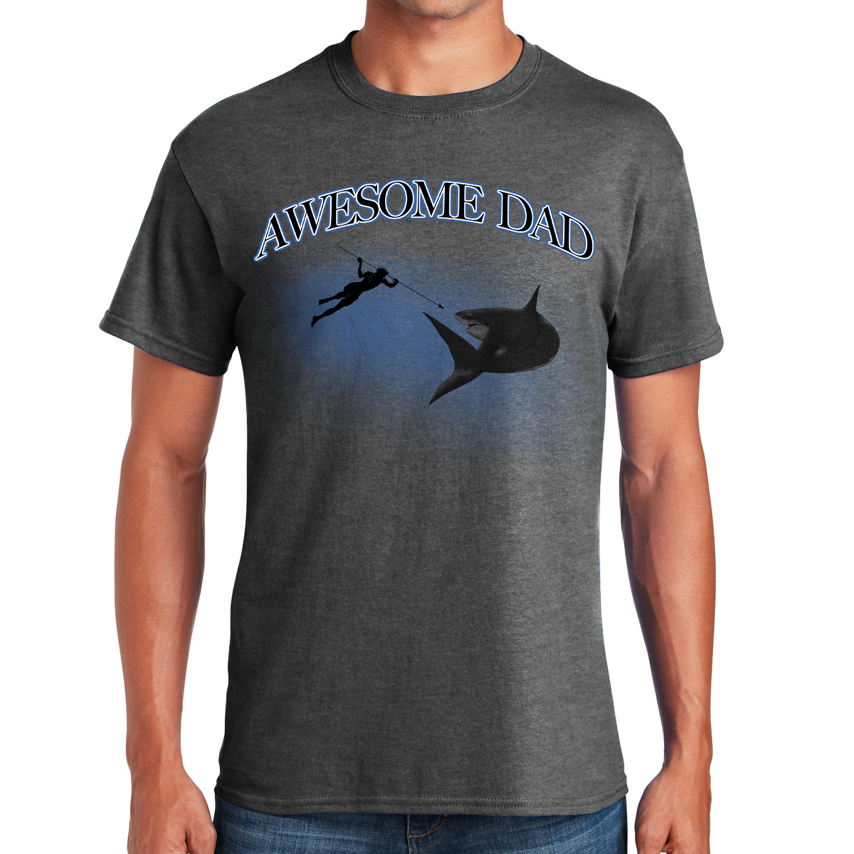 Introducing the "Awesome Dad: Spearfishing for Shark Adventure" T-shirt – a bold and thrilling way to celebrate your dad's daring spirit and his passion for underwater adventures!