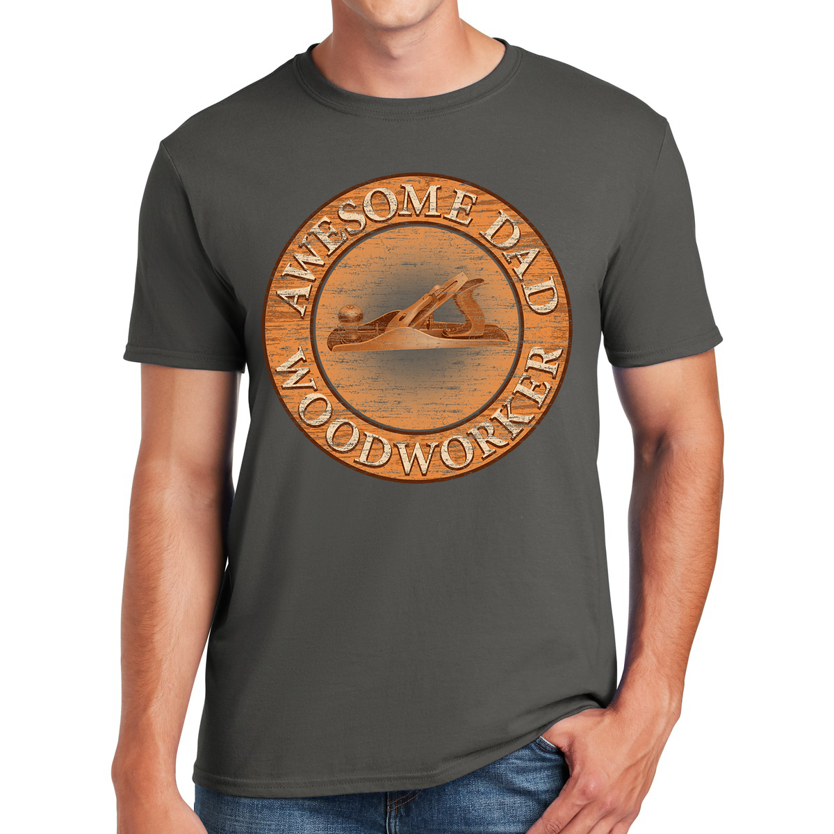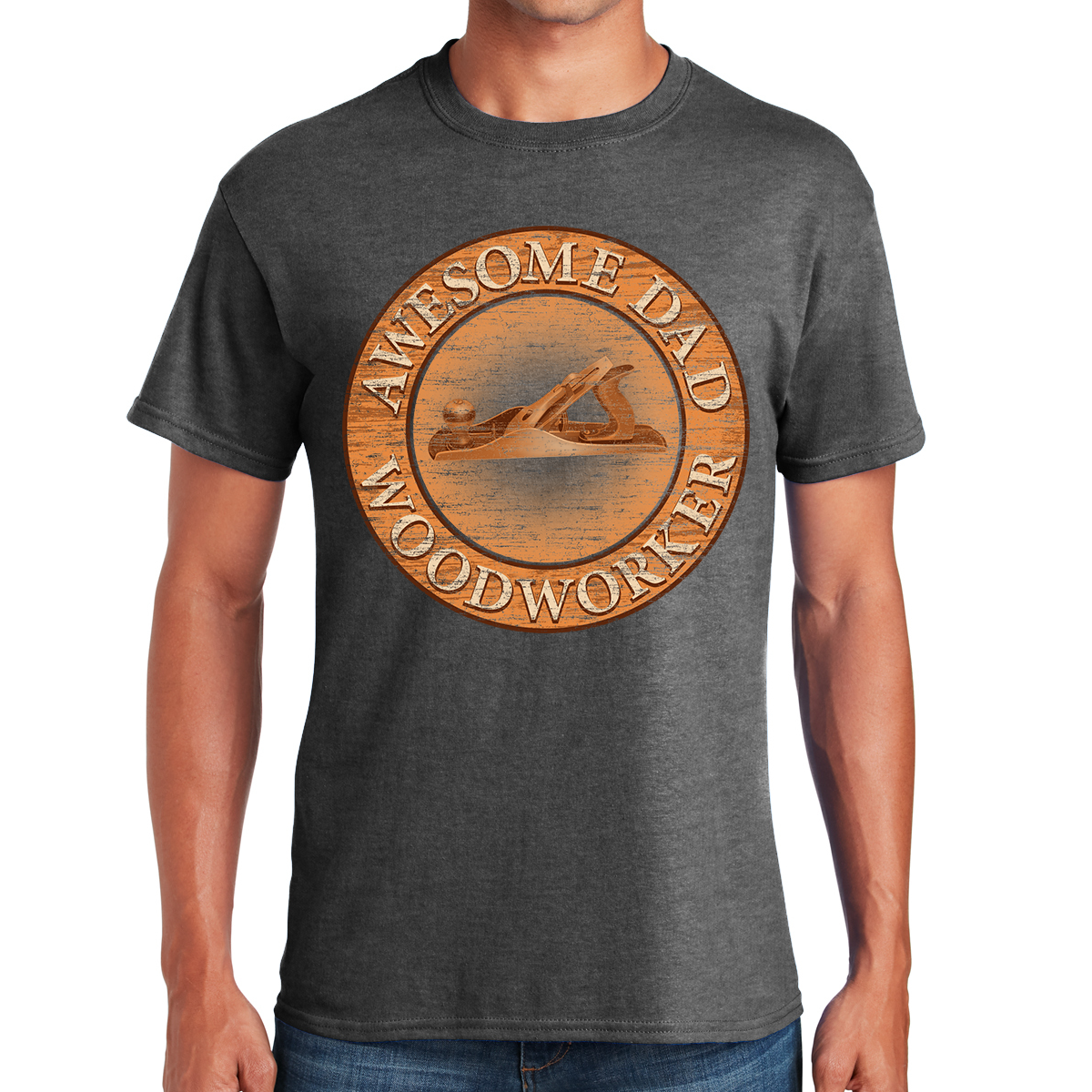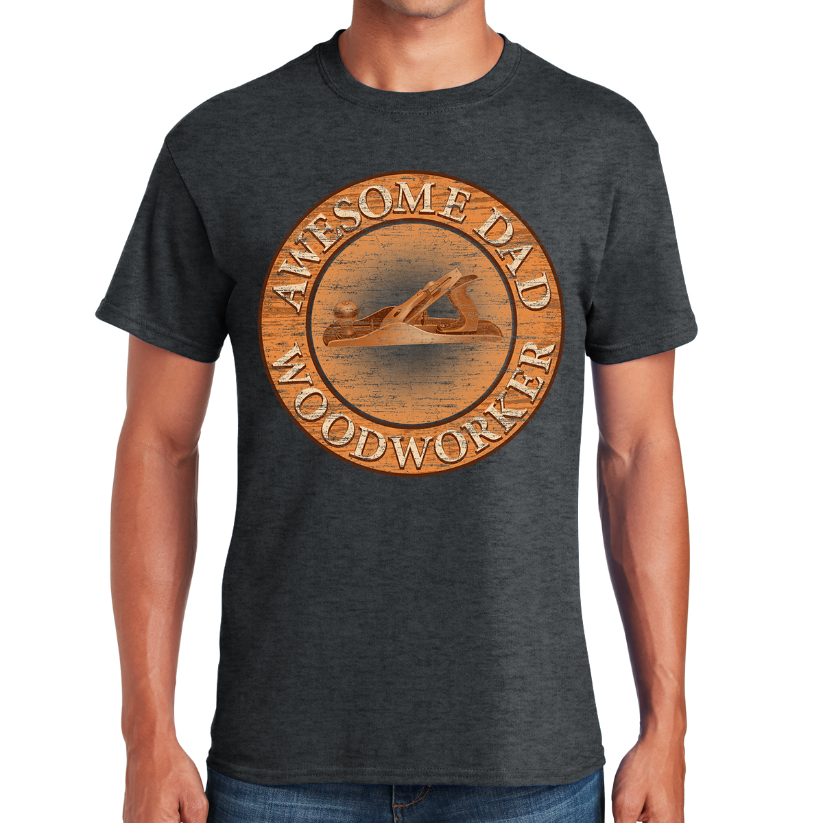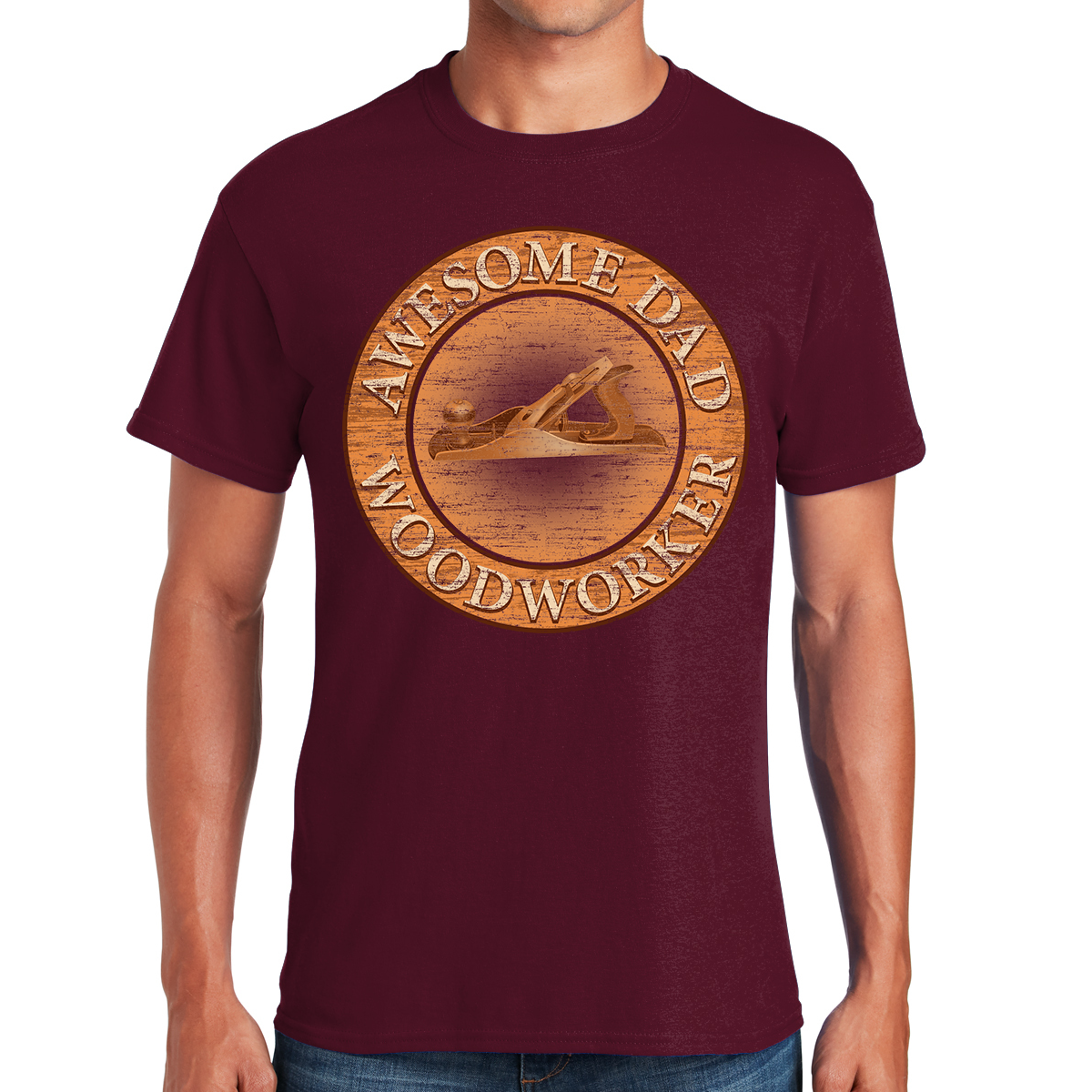 The phrase, "Awesome Dad Woodworker," is the focal point of the design, symbolizing your passion for woodworking and your ability to turn simple wood into cherished family heirlooms.