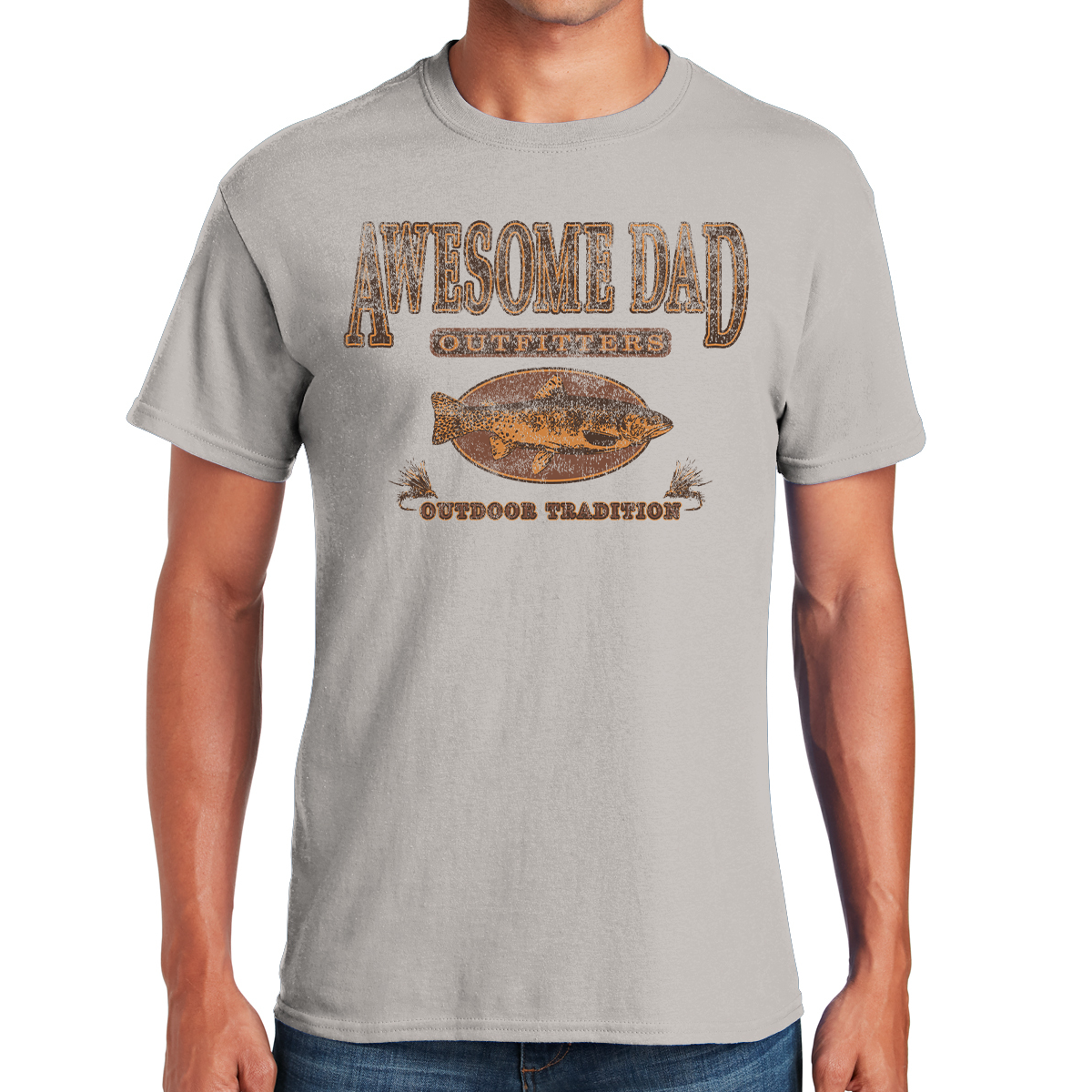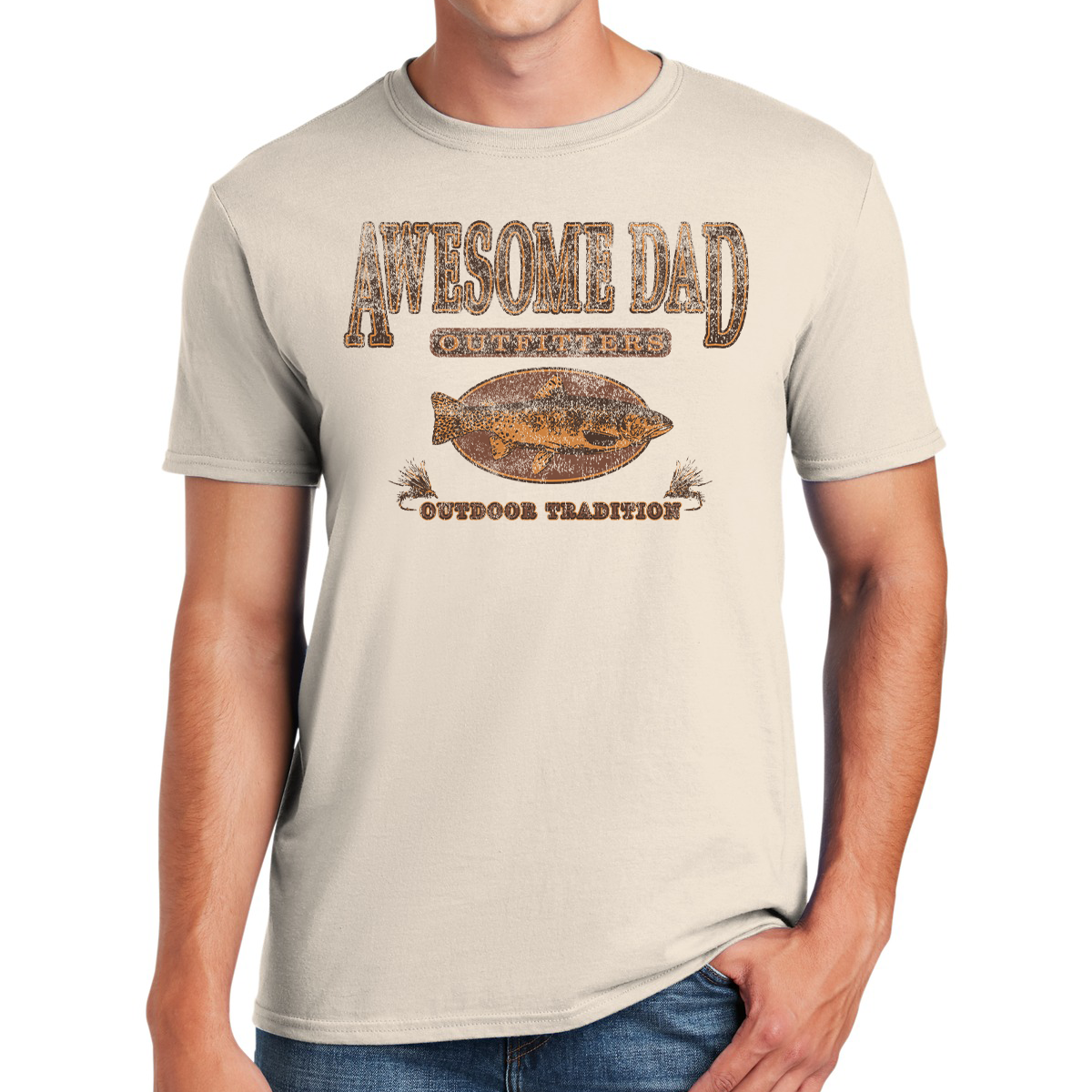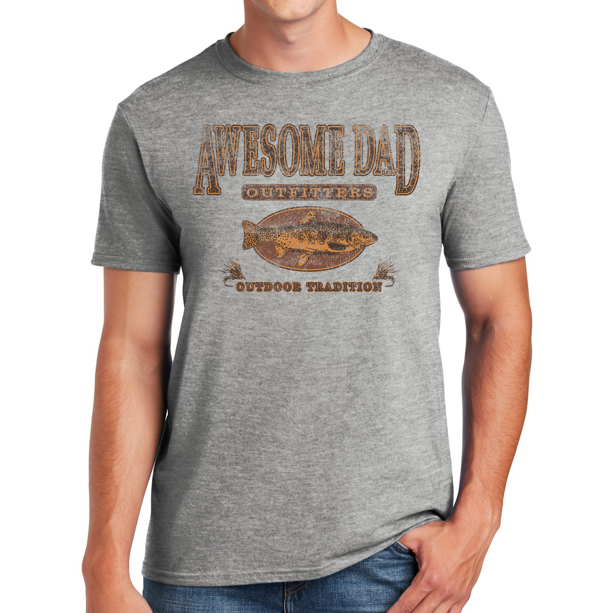 Introducing the Awesome Dad Outfitters Outdoor Tradition Gifts for Dads T-shirt – a heartfelt tribute to your dad's commitment to passing down the rich heritage of outdoor adventures and the love of trout fishing!