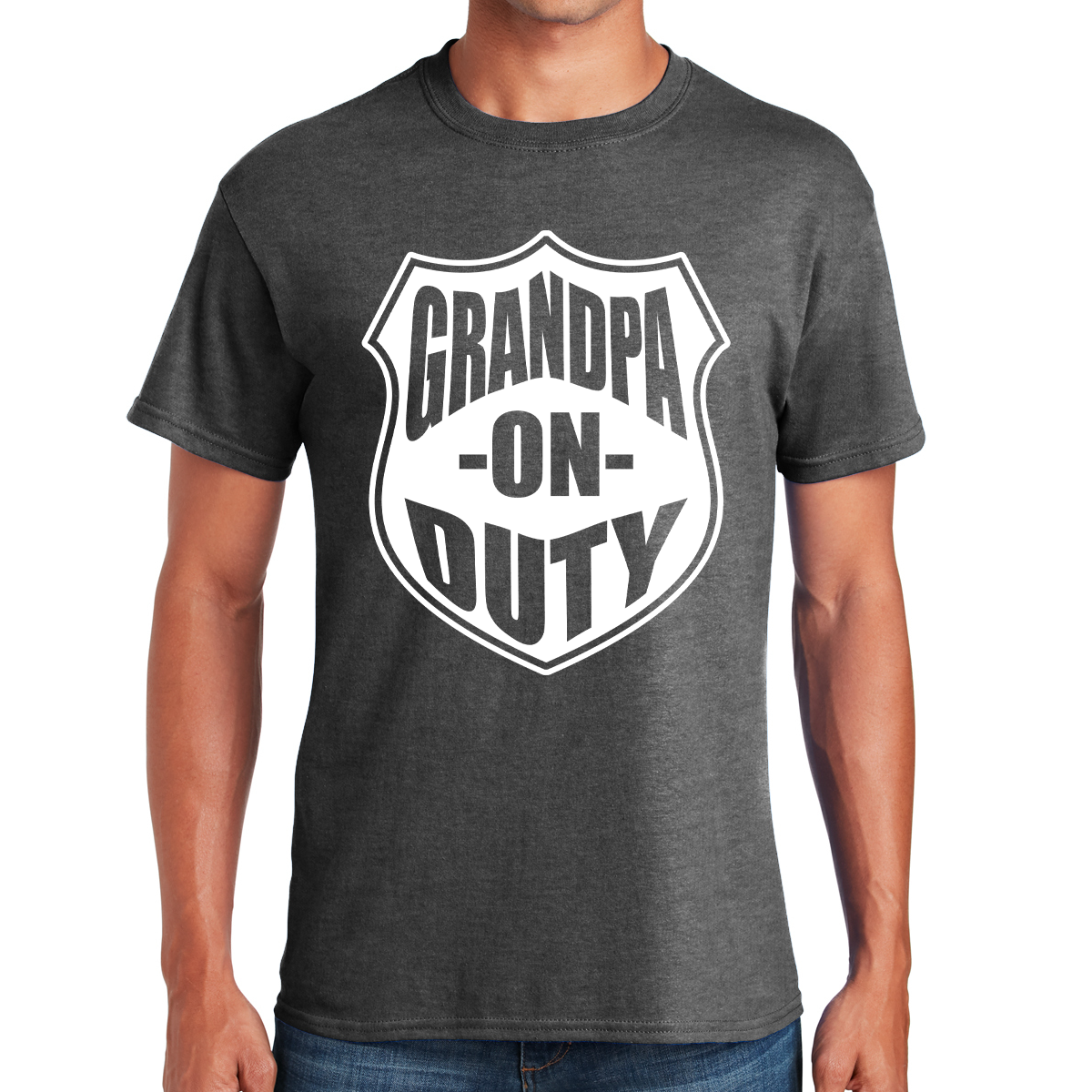 The phrase, "Grandpa on Duty," is prominently featured in the design, signifying your dedication to being a loving and attentive grandpa.