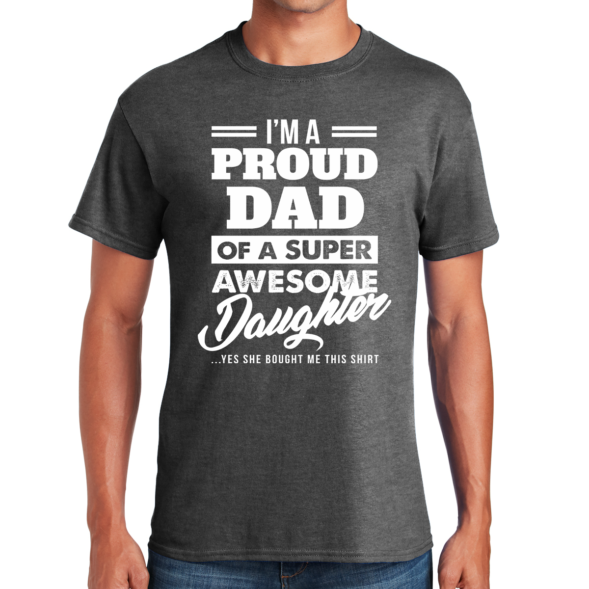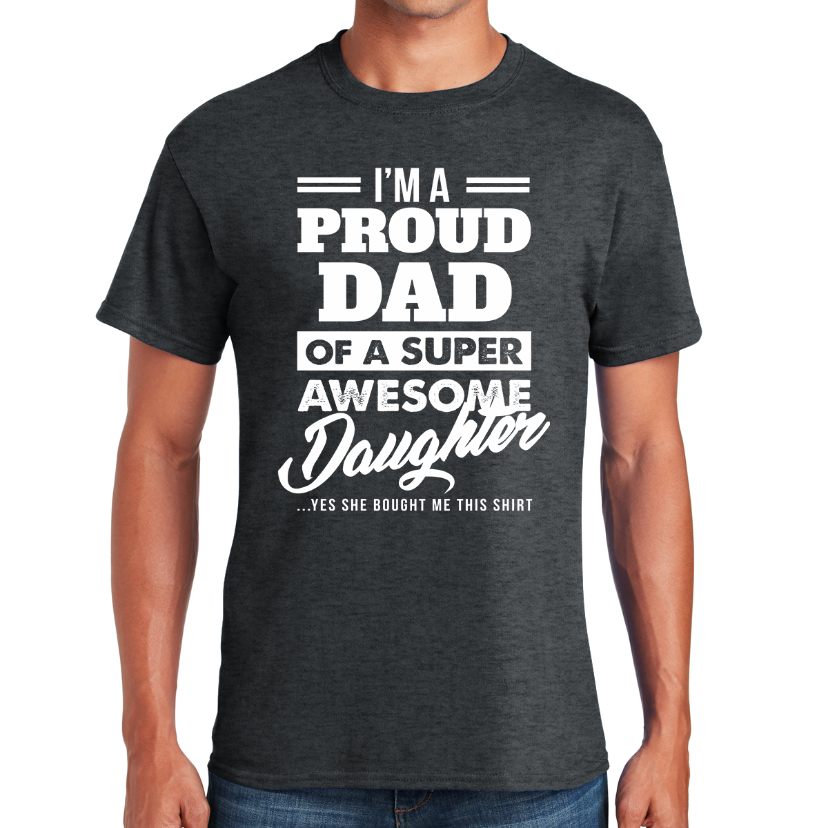 Introducing the "Proud Dad of a Super Awesome Daughter" T-shirt – the perfect way for your dad to express his love and pride in you, his incredible daughter!