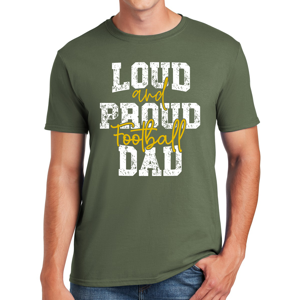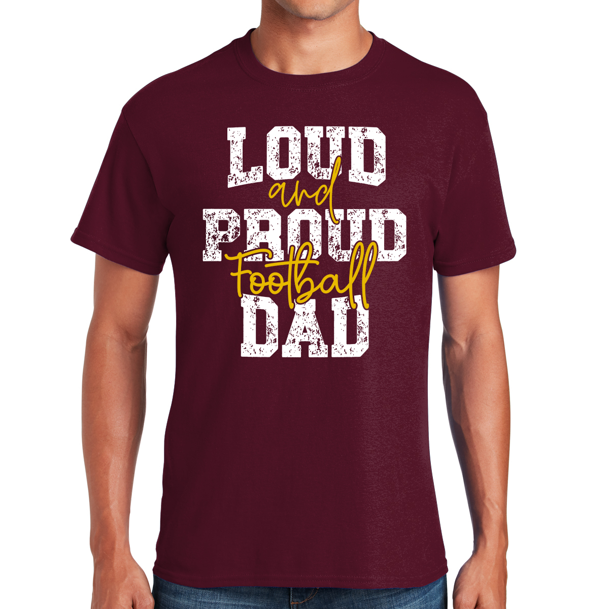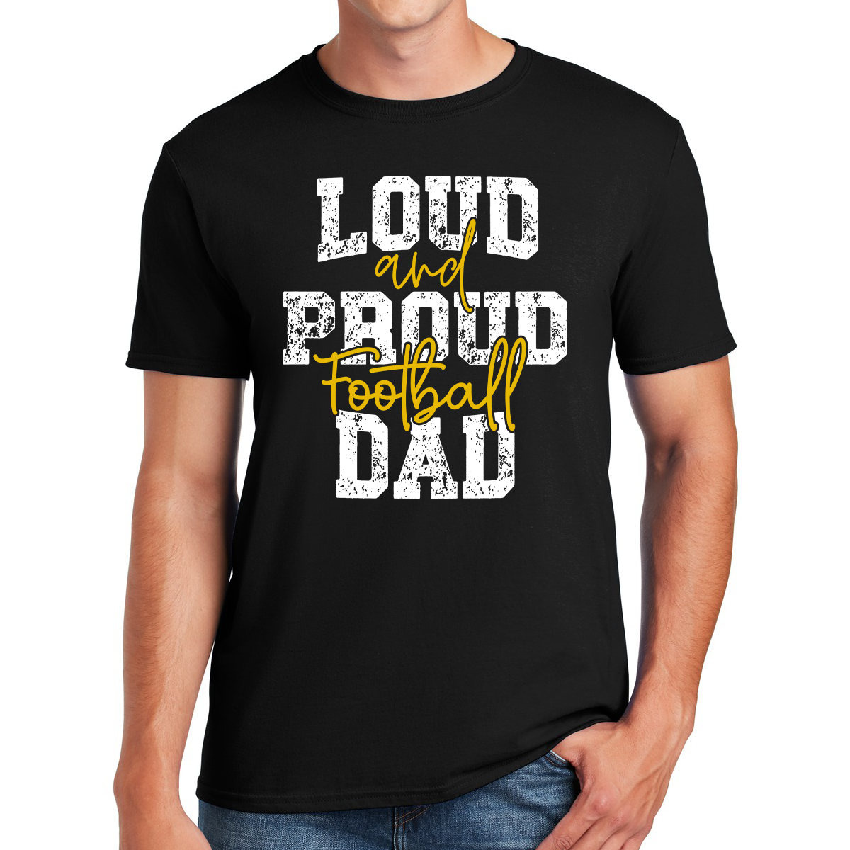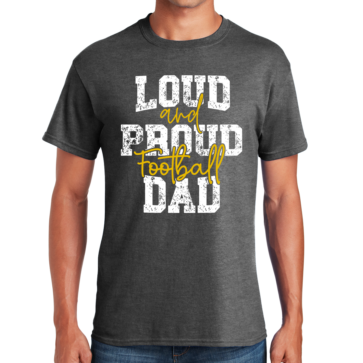 Introducing the "Loud and Proud Football Dad" T-shirt – the ultimate way for your dad to show off his passion for the game and his unwavering support for your football adventures!