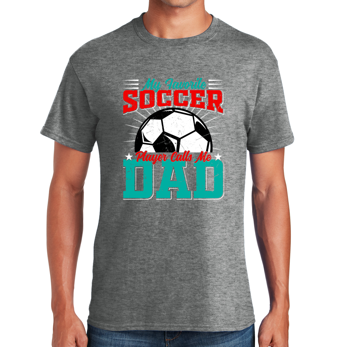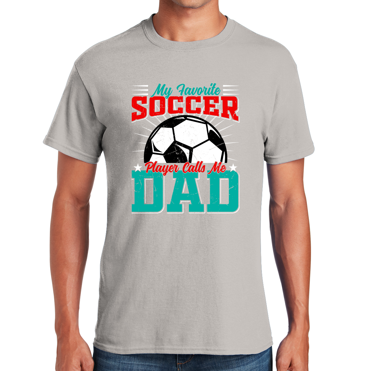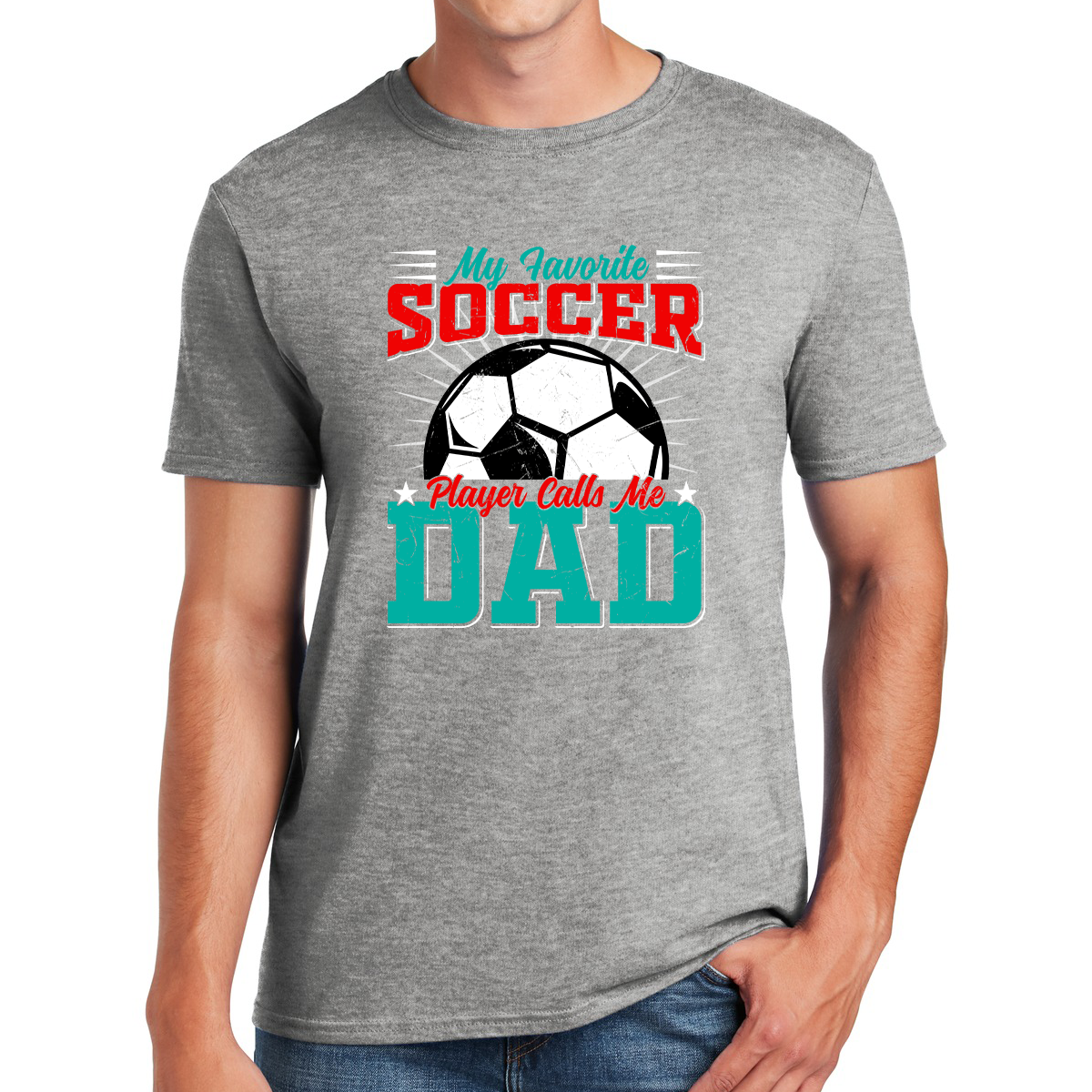"Celebrate the best of fatherhood and football with our My Favorite Soccer Player Calls Me Dad Celebrate Fatherhood and Soccer Awesome Dad's T-shirt! This design is perfect for epic fathers who not only love the beautiful game but also cherish their special bond with their little soccer star.