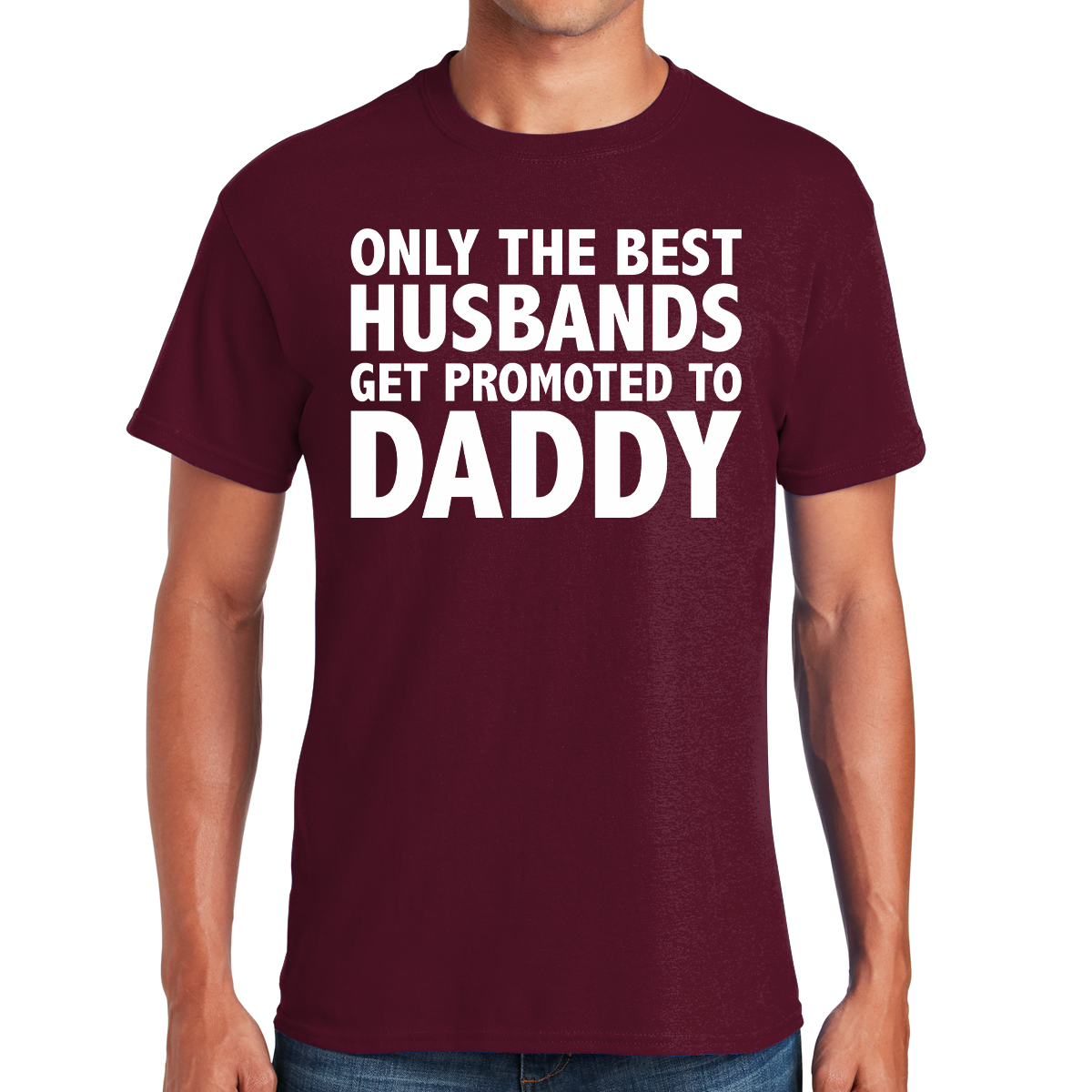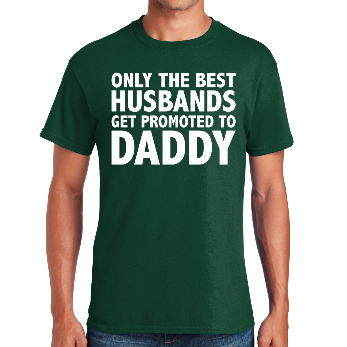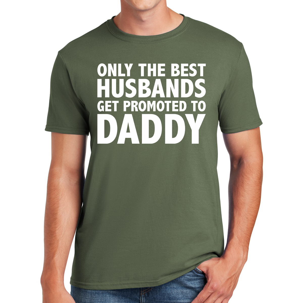 The phrase, "Only the Best Husbands Get Promoted to Daddy," is prominently featured in the design, symbolizing the transition into fatherhood and the honor it brings.