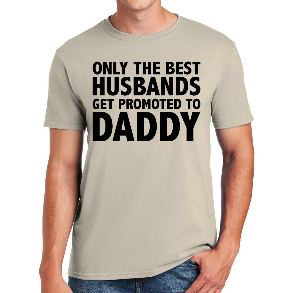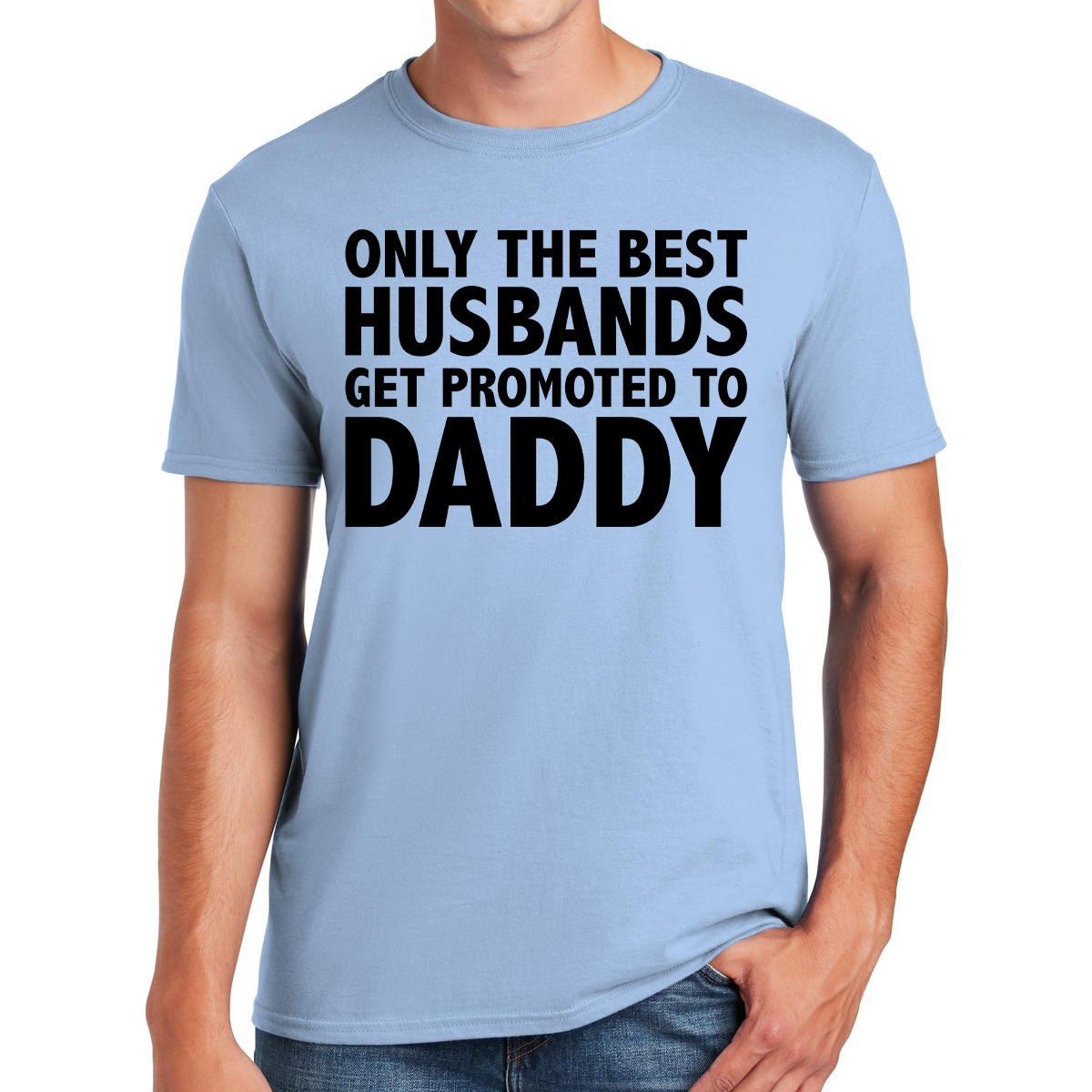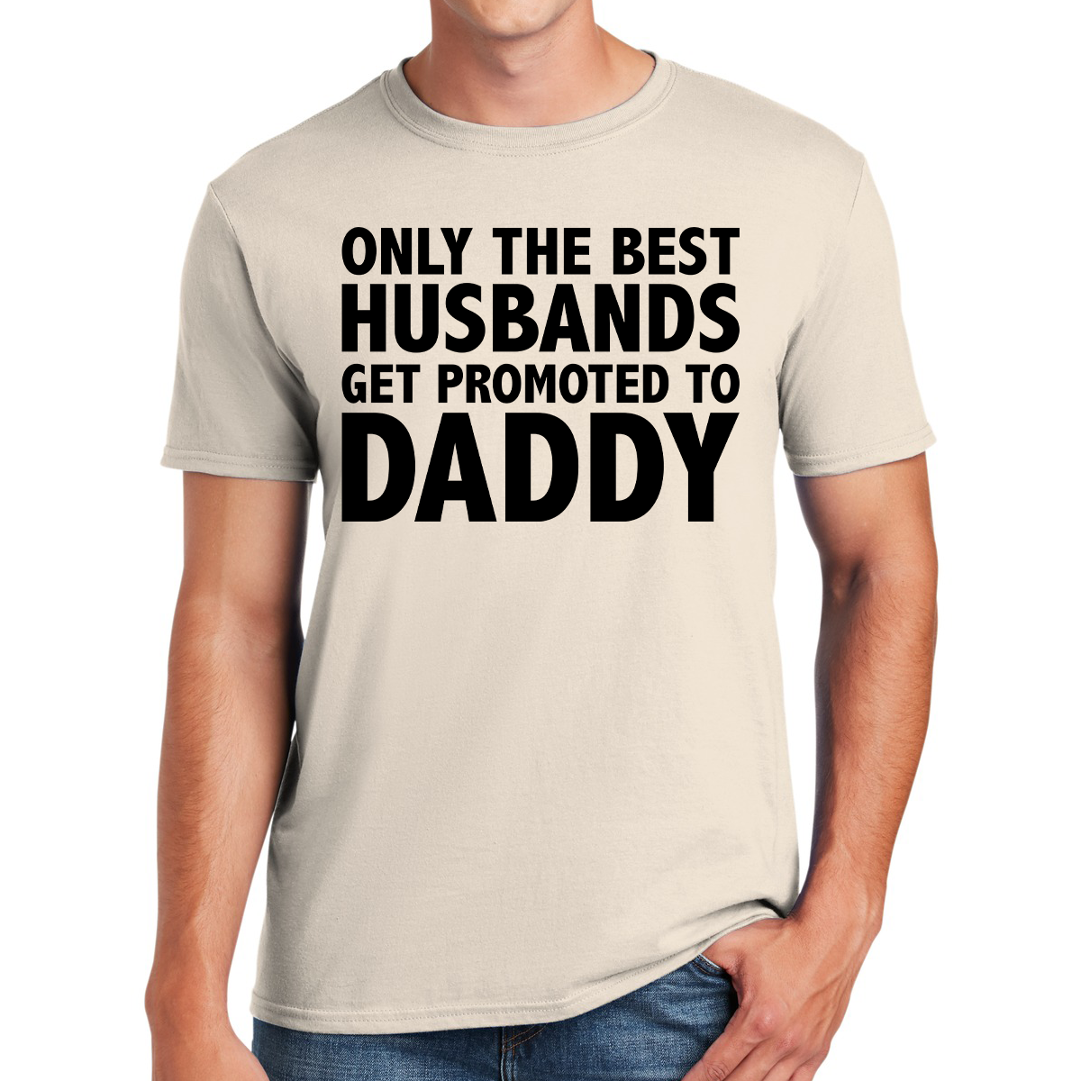 The phrase, "Only the Best Husbands Get Promoted to Daddy," is prominently featured in the design, symbolizing the transition into fatherhood and the honor it brings.