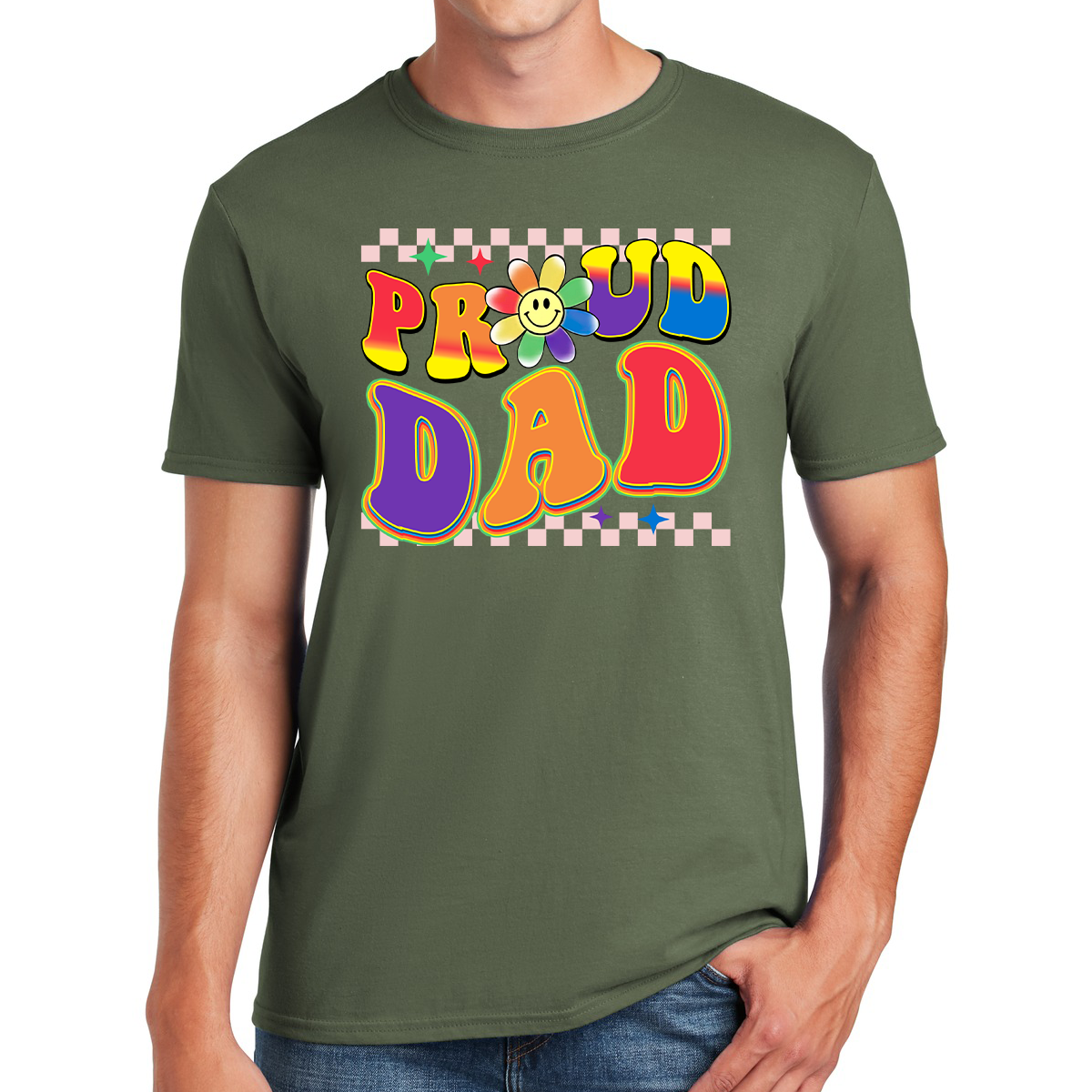 The phrase, "Proud Dad," is prominently featured in the design, signifying your unwavering pride in your role as a loving father.