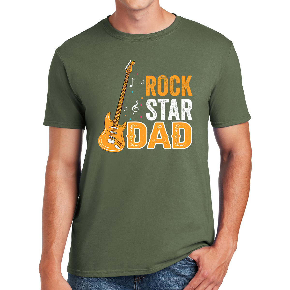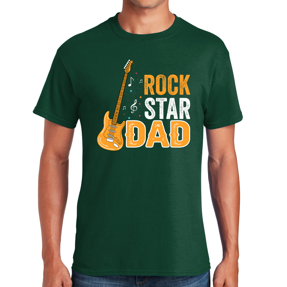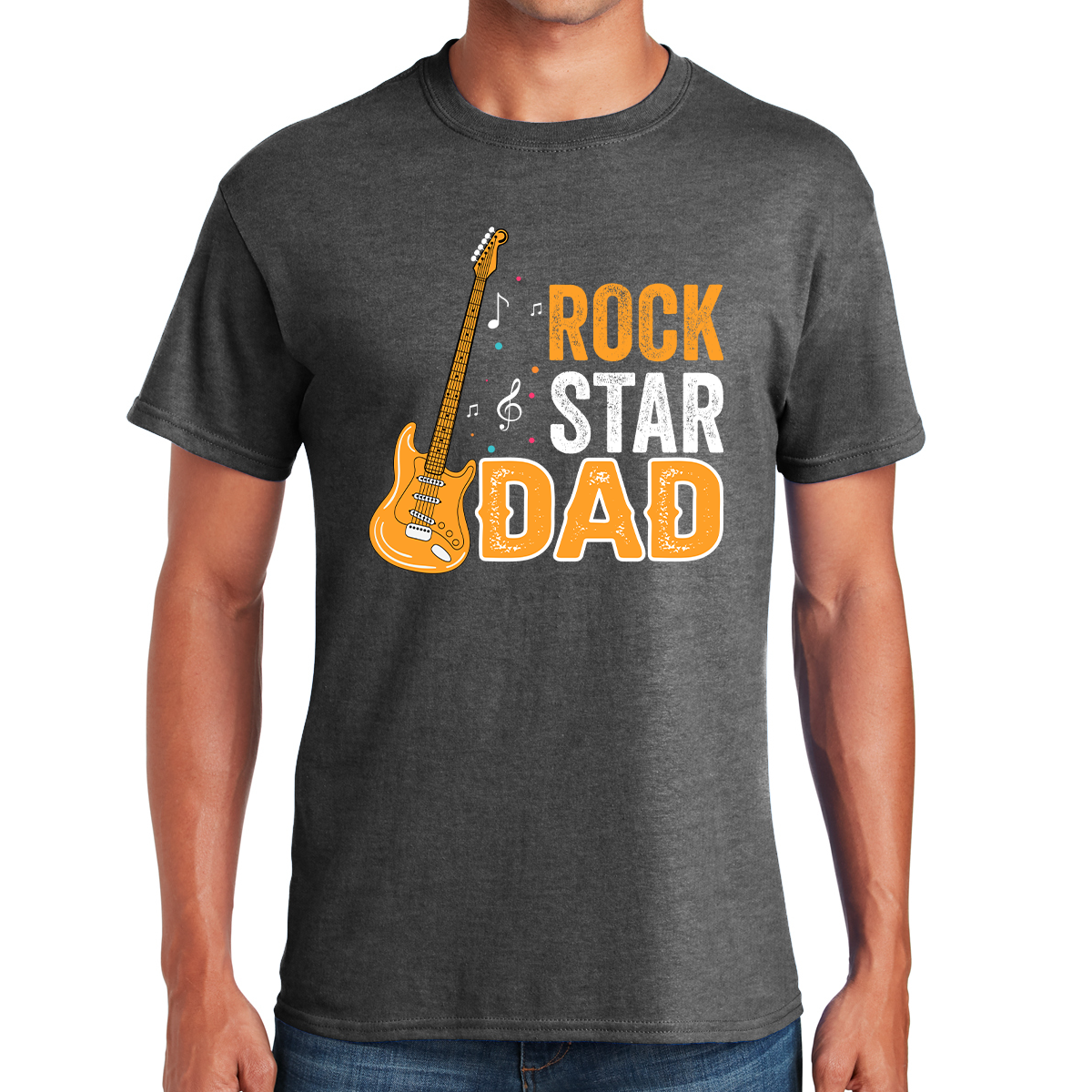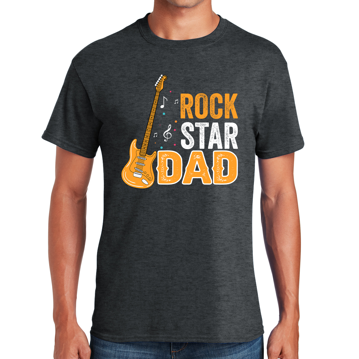 The phrase, "ROCK STAR DAD," is prominently featured in the design, signifying your ability to shred through the challenges of fatherhood with style and a whole lot of love.