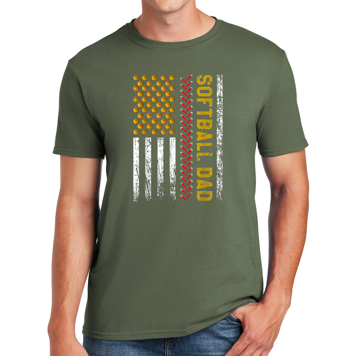 The design exudes a sense of unity, just like a winning team, making it an ideal choice for your dad's special day. Whether he's coaching from the sidelines, cheering in the stands, or playing catch with the family, this tee is the perfect way to show his love for softball and his country.