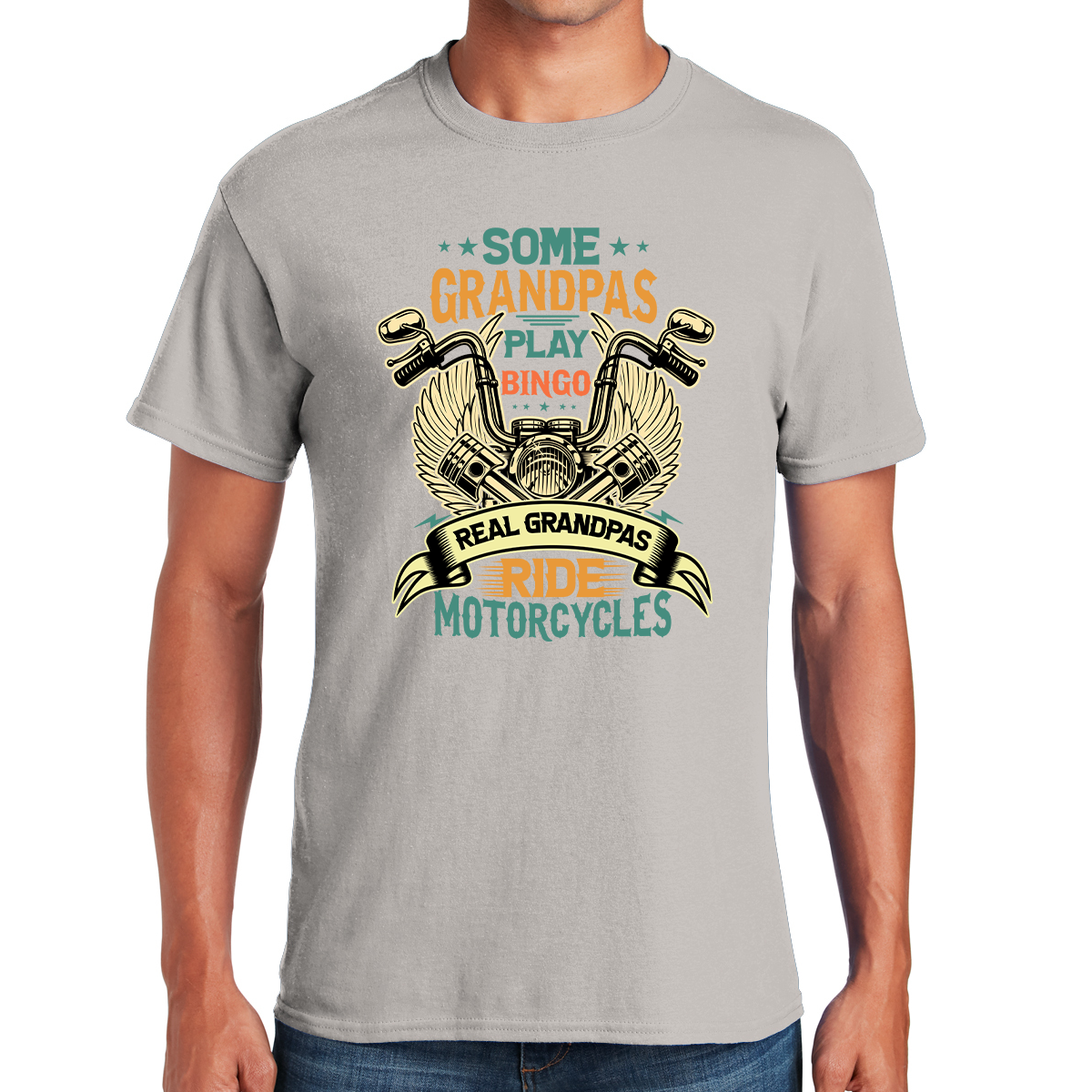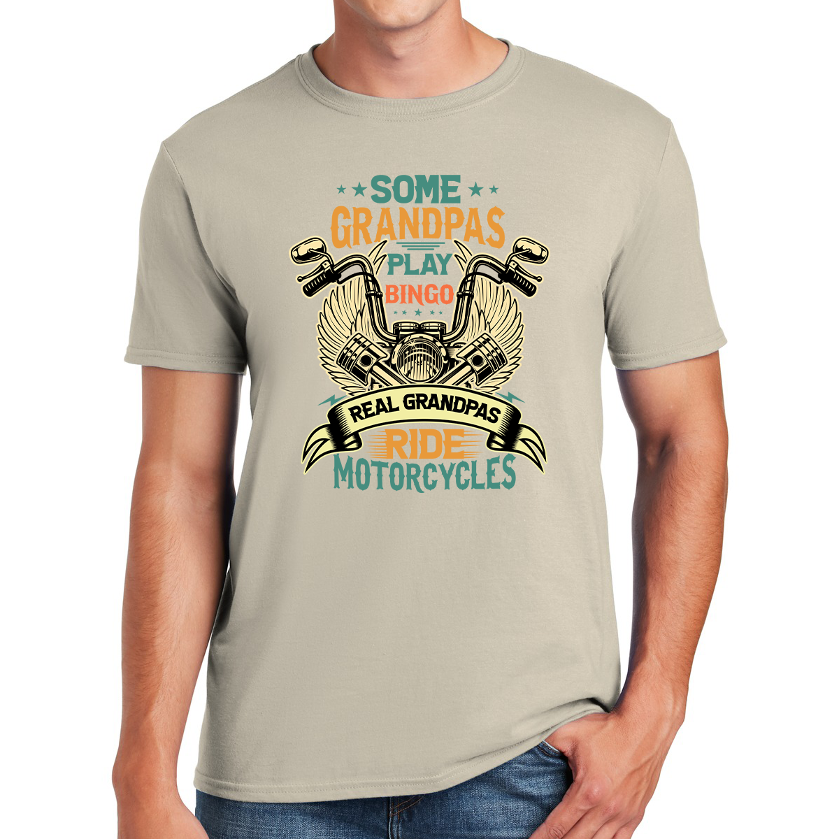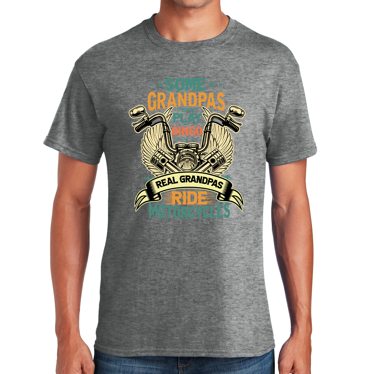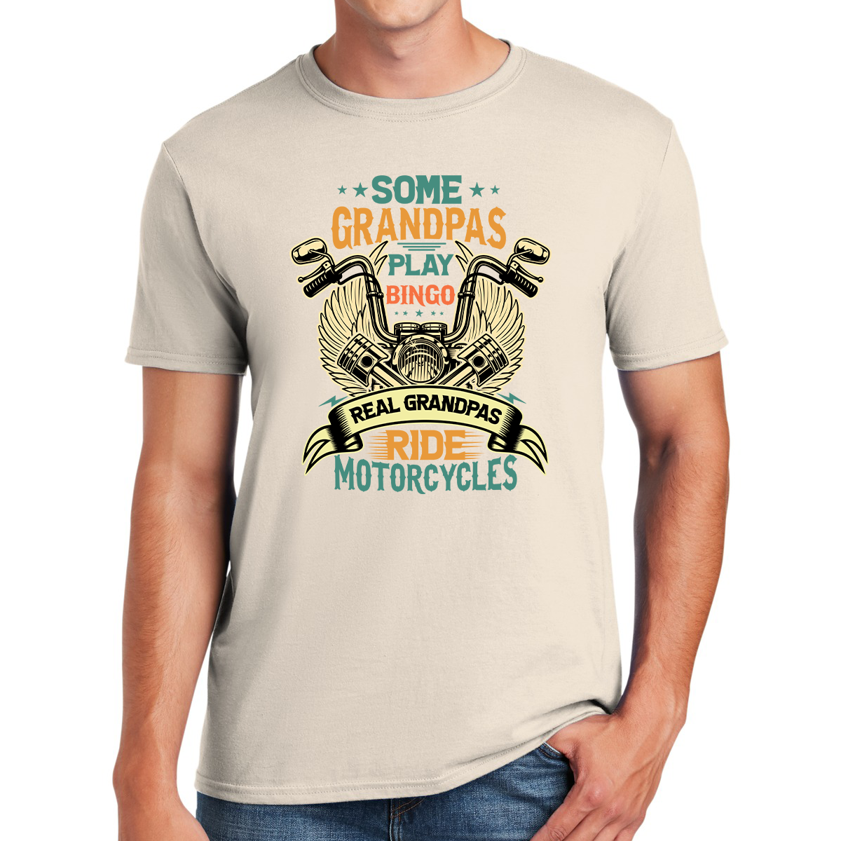 The "Some Grandpas Play Bingo, Real Grandpas Ride Motorcycles" tee isn't just about humor; it's a celebration of your grandpa's zest for life and the cherished moments you've shared together on those unforgettable rides. It's a reminder that he's not just a grandpa; he's a free-spirited adventurer, and he deserves a T-shirt that showcases his unique spirit.