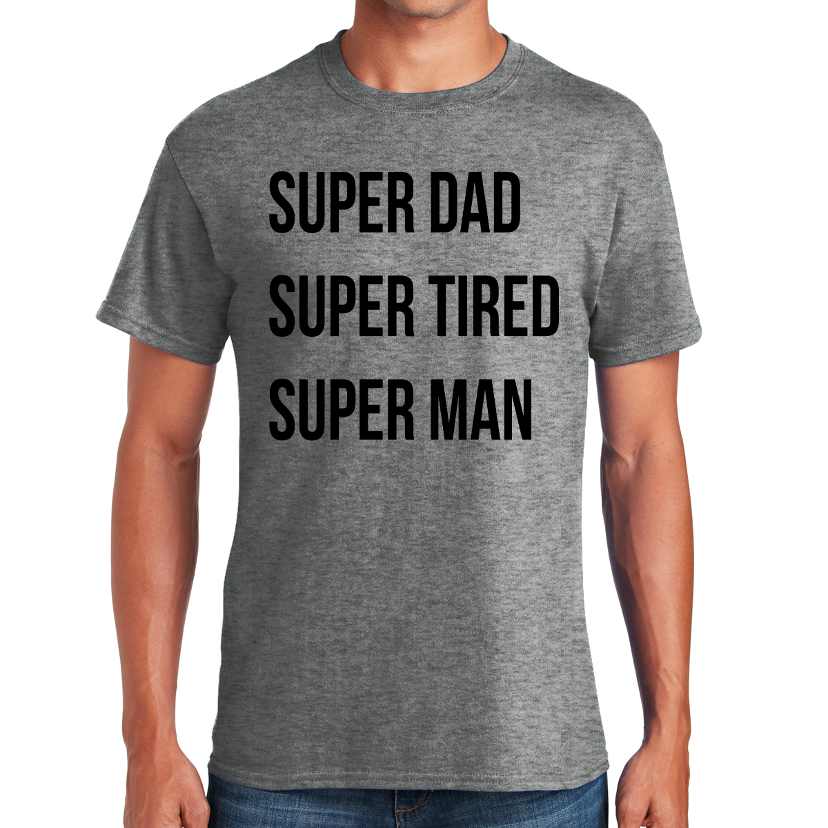 Introducing our latest t-shirt design: "Super Dad, Super Tired, Super Man: Juggling Fatherhood Like a Hero."