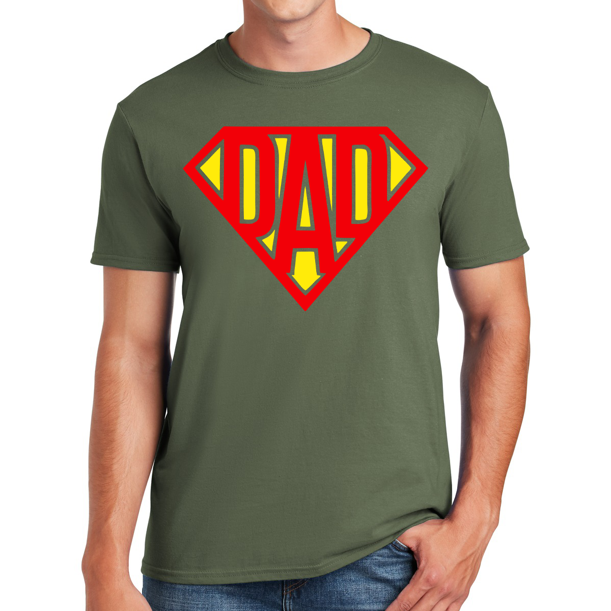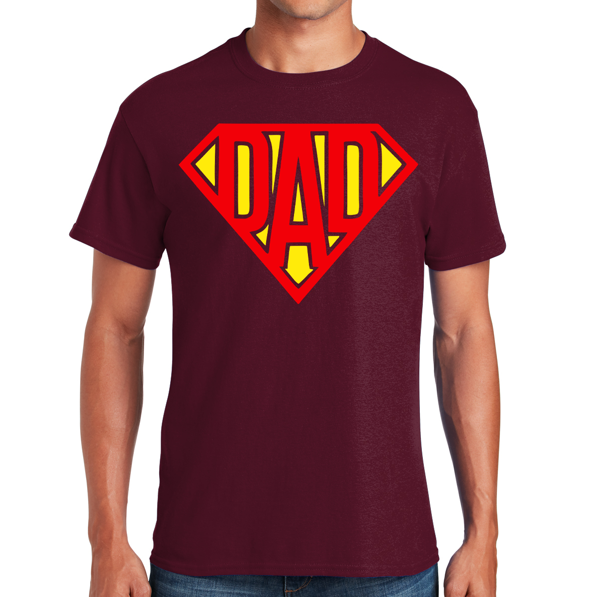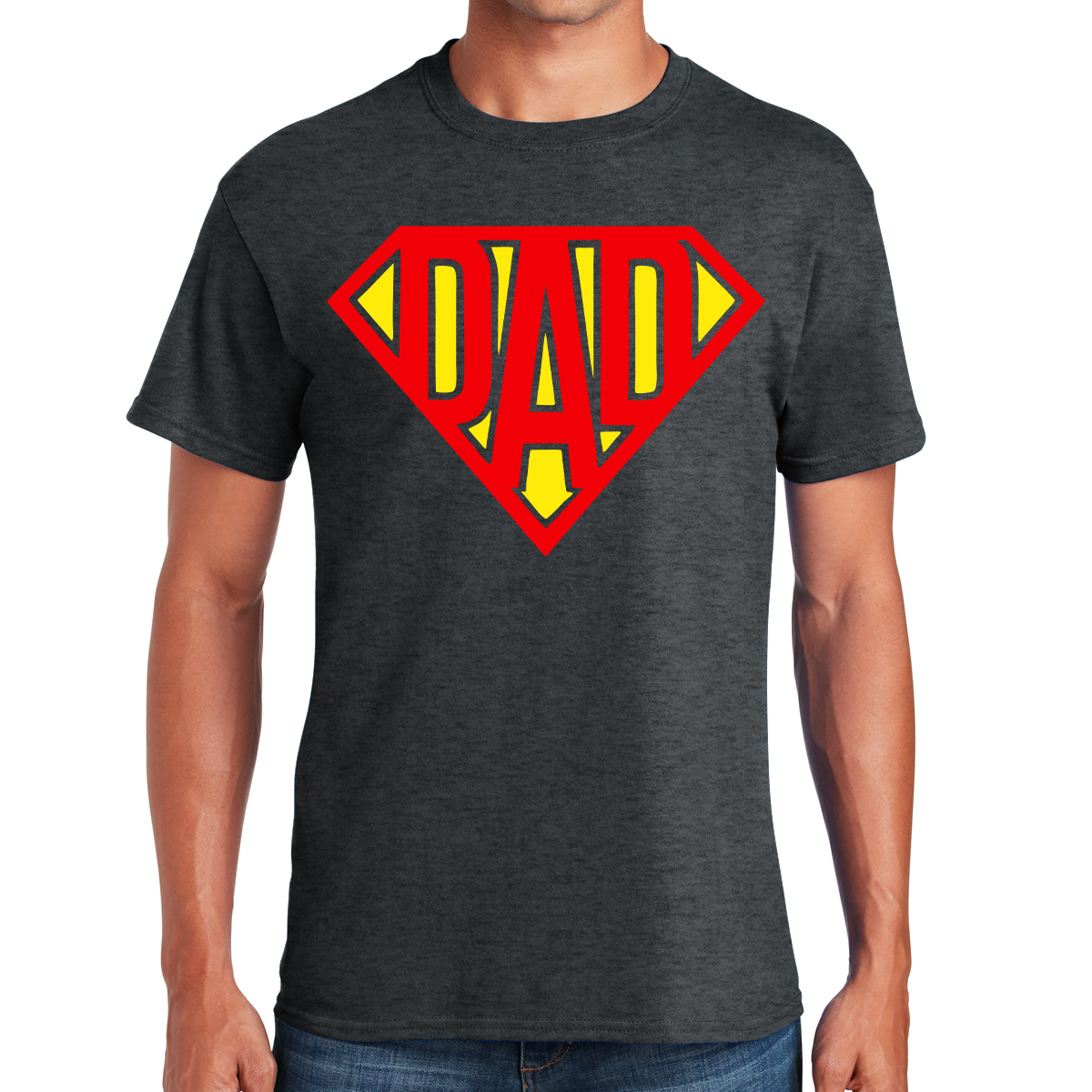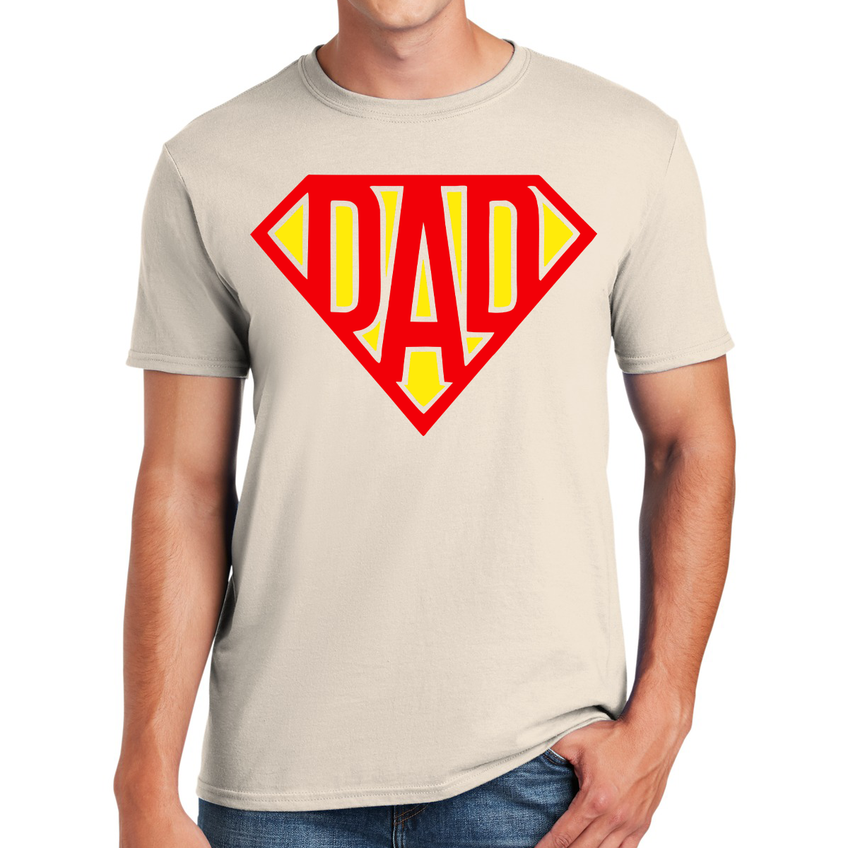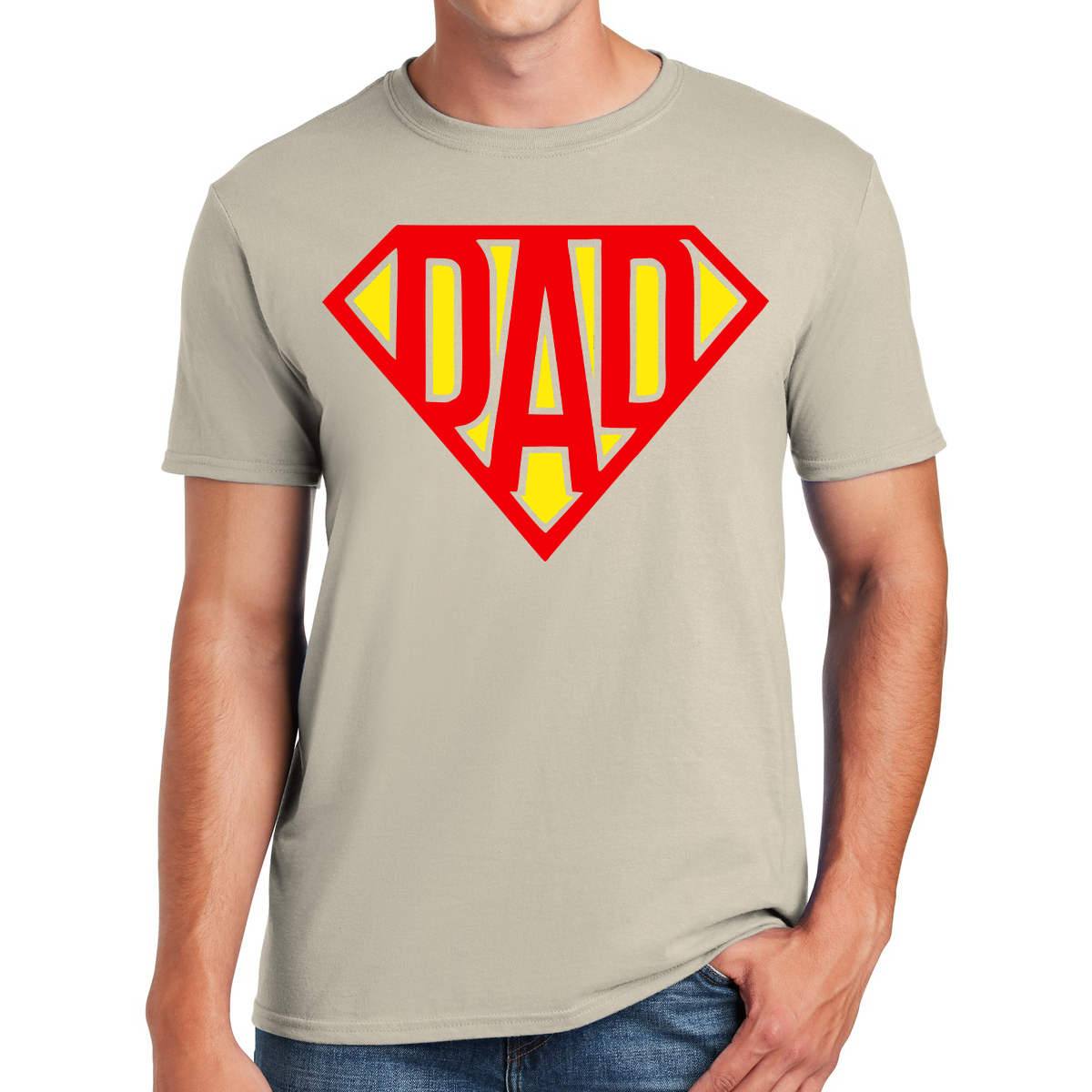 The phrase, "Super Dad," takes center stage in the design, symbolizing the heroic qualities that fathers possess in their role as protectors, mentors, and providers.