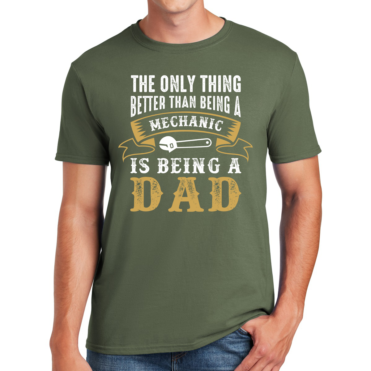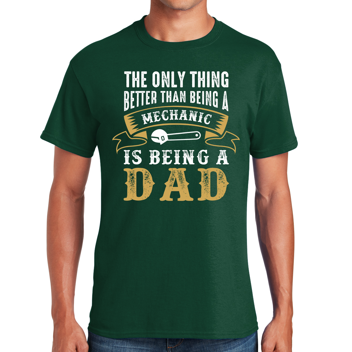 To enhance the mechanic theme, the design may incorporate graphic elements such as wrenches, gears, or other mechanical symbols, symbolizing your passion for mechanics and repair work, alongside a heart to represent the love and care you provide to your children. Whether you're troubleshooting engines or nurturing the emotional well-being of your kids, this shirt is a celebration of the balance you strike between your profession and your role as a loving father.