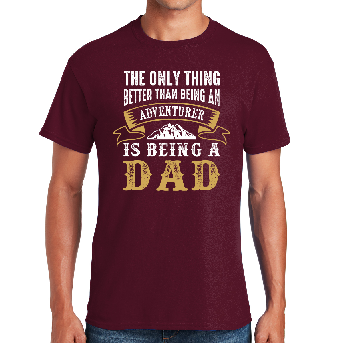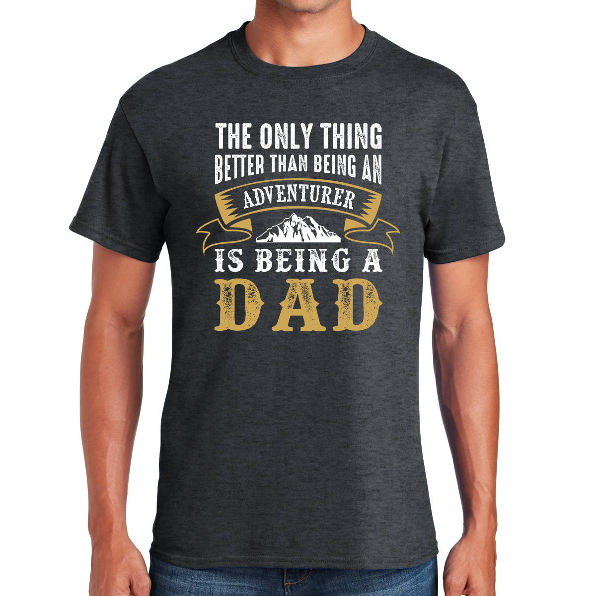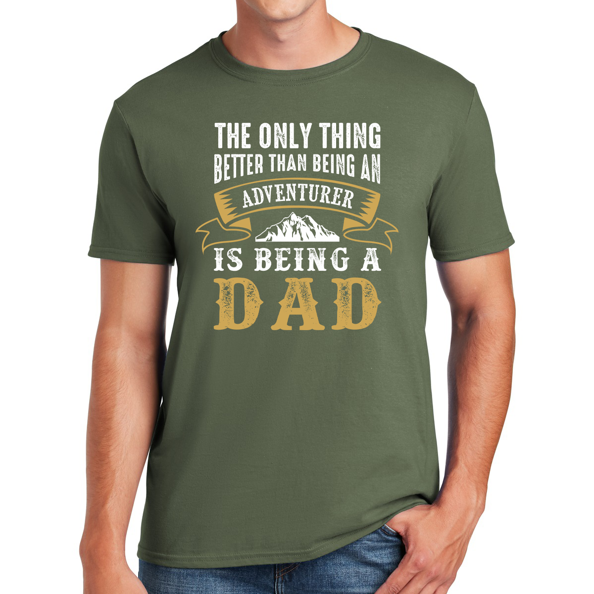The front of the T-shirt proudly displays a captivating and inspiring quote that reads, "The Only Thing Better Than Being An Adventurer Is Being A Dad." The text is artfully arranged in a bold, adventure-inspired font that catches the eye and sparks curiosity. This shirt is a testament to the idea that while exploring the world is a thrilling adventure, nothing can surpass the joy and fulfillment of being a loving father.