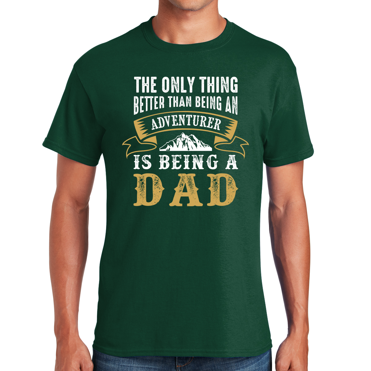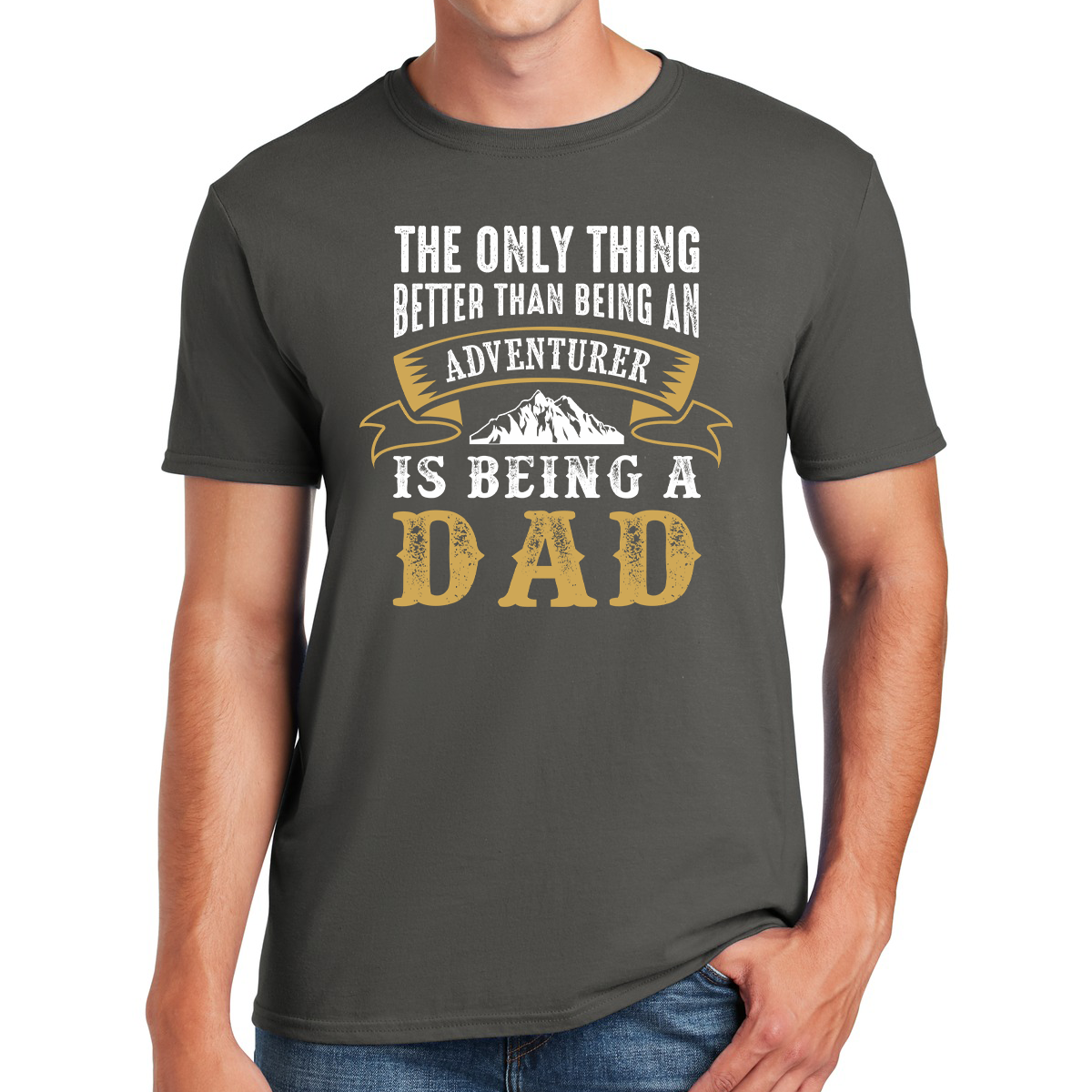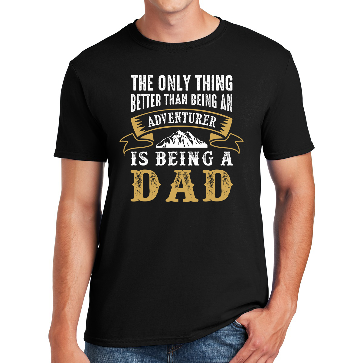 The front of the T-shirt proudly displays a captivating and inspiring quote that reads, "The Only Thing Better Than Being An Adventurer Is Being A Dad." The text is artfully arranged in a bold, adventure-inspired font that catches the eye and sparks curiosity. This shirt is a testament to the idea that while exploring the world is a thrilling adventure, nothing can surpass the joy and fulfillment of being a loving father.