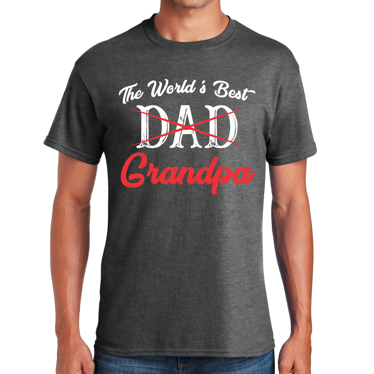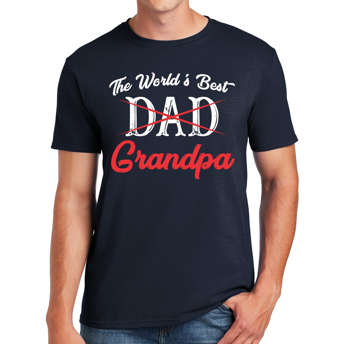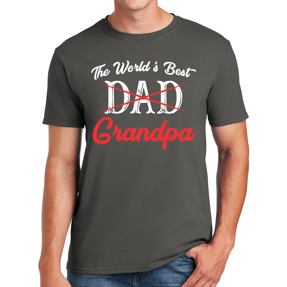 The phrase, "The World's Best Grandpa," is prominently featured in the design, signifying the exceptional role you play in your family's life.