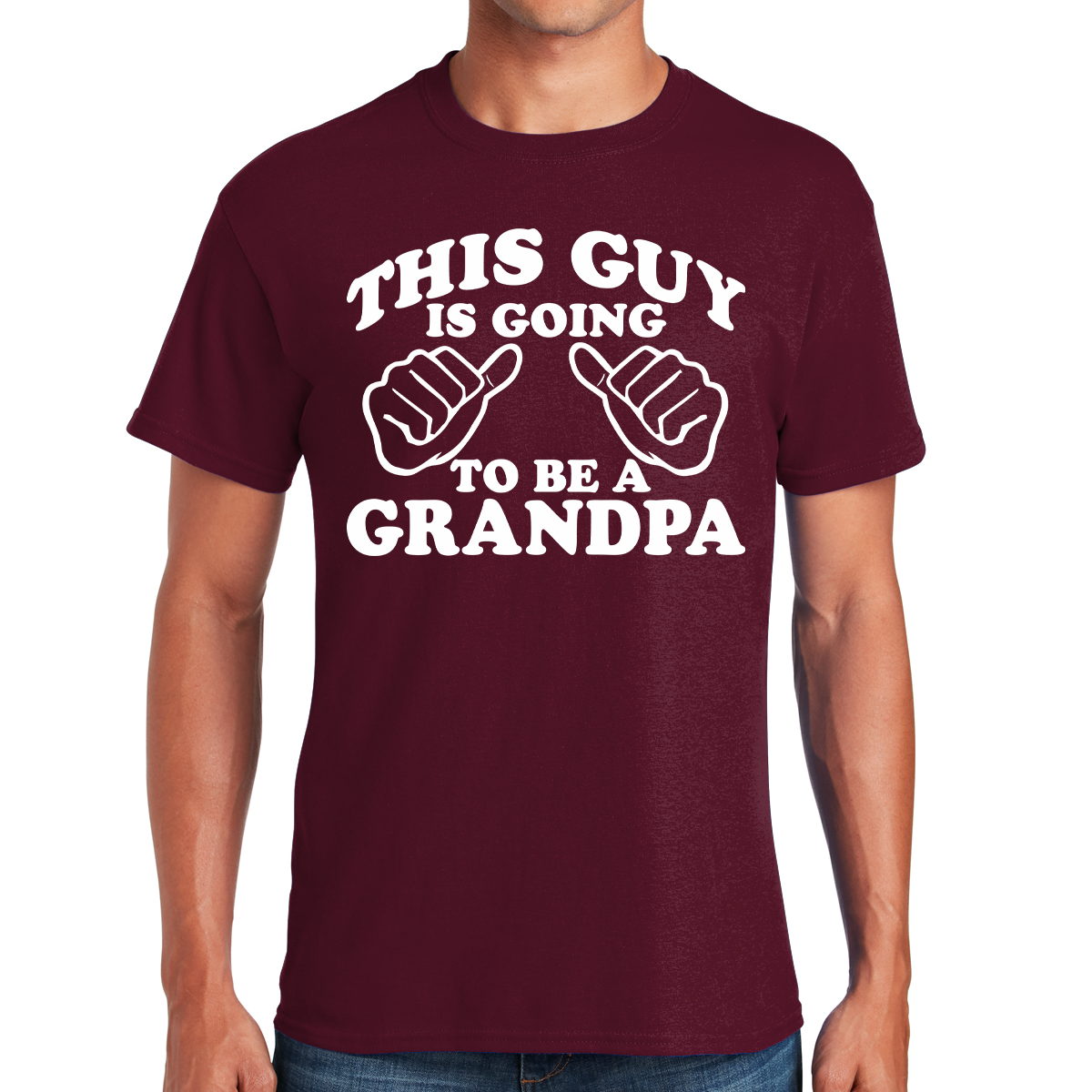 The phrase, "This Guy Is Going to Be Grandpa," is prominently featured in the design, signifying your anticipation of the wonderful role that awaits you.